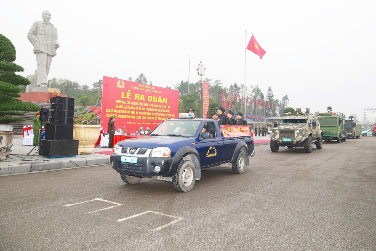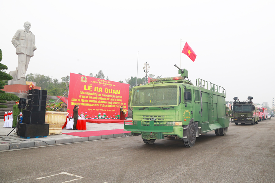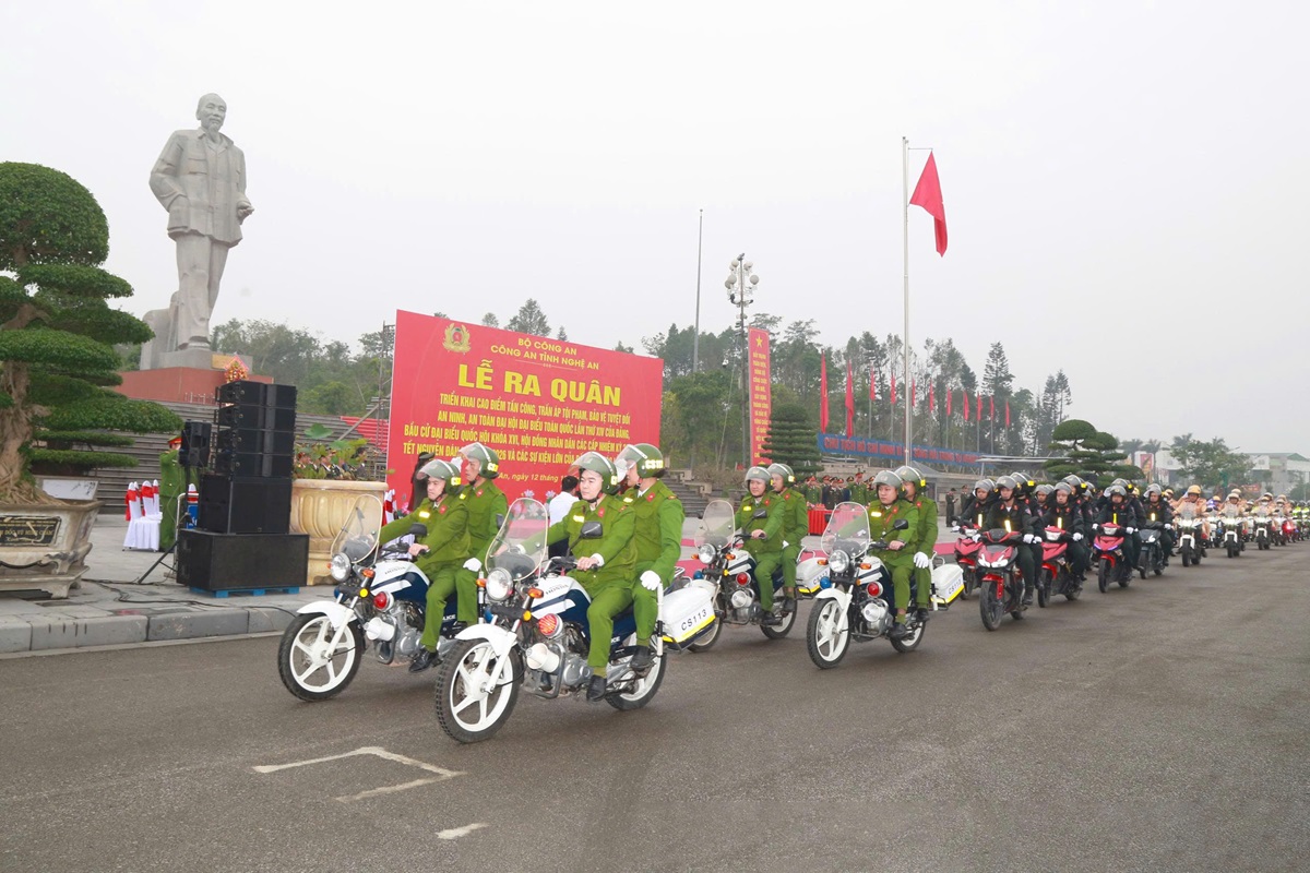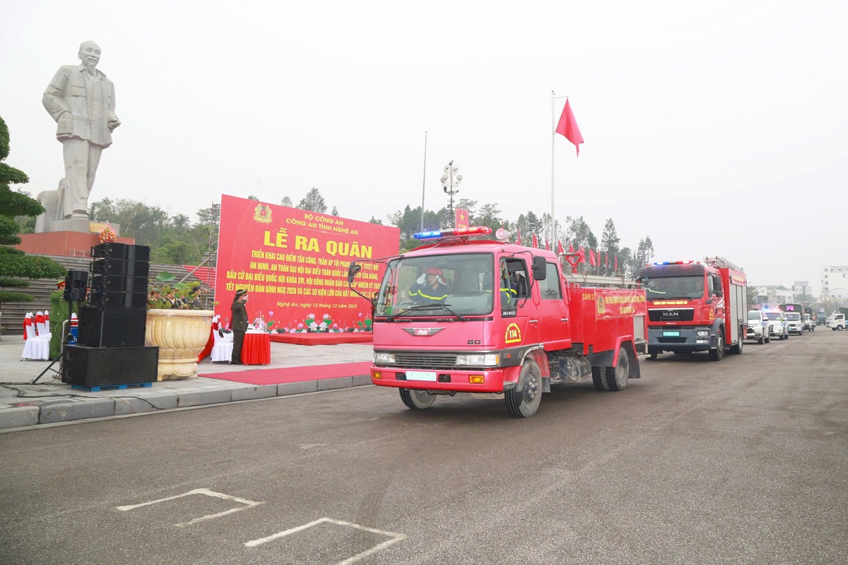 Sáng 12/12/2025, tại Quảng trường Hồ Chí Minh, Công an tỉnh Nghệ An trang trọng tổ chức Lễ ra quân tấn công, trấn áp tội phạm, bảo vệ tuyệt đối an ninh, an toàn Đại hội đại biểu toàn quốc lần thứ XIV của Đảng, bầu cử đại biểu Quốc hội khóa XVI, Hội đồng nhân dân các cấp nhiệm kỳ 2026 – 2031, Tết Nguyên đán Bính Ngọ 2026 và các sự kiện lớn của đất nước, các lễ hội đầu năm. Đợt cao điểm bắt đầu từ 08 giờ ngày 12/12/2025 đến ngày 16/3/2026.
