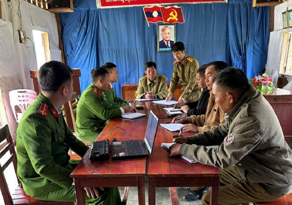 | Buổi làm việc giữa Công an xã Keng Đu (Việt Nam) và Công an huyện Nọong Hét (Lào) |