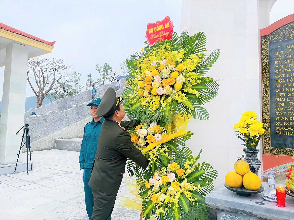 | Đồng chí Thiếu tướng Nguyễn Hồng Nguyên - Phó Chánh Văn phòng Bộ Công an, Phó Trưởng Ban thường trực Ban Chỉ huy phòng thủ dân sự Bộ Công an dâng hoa, dâng hương tưởng nhớ công lao to lớn của các anh hùng, liệt sỹ |