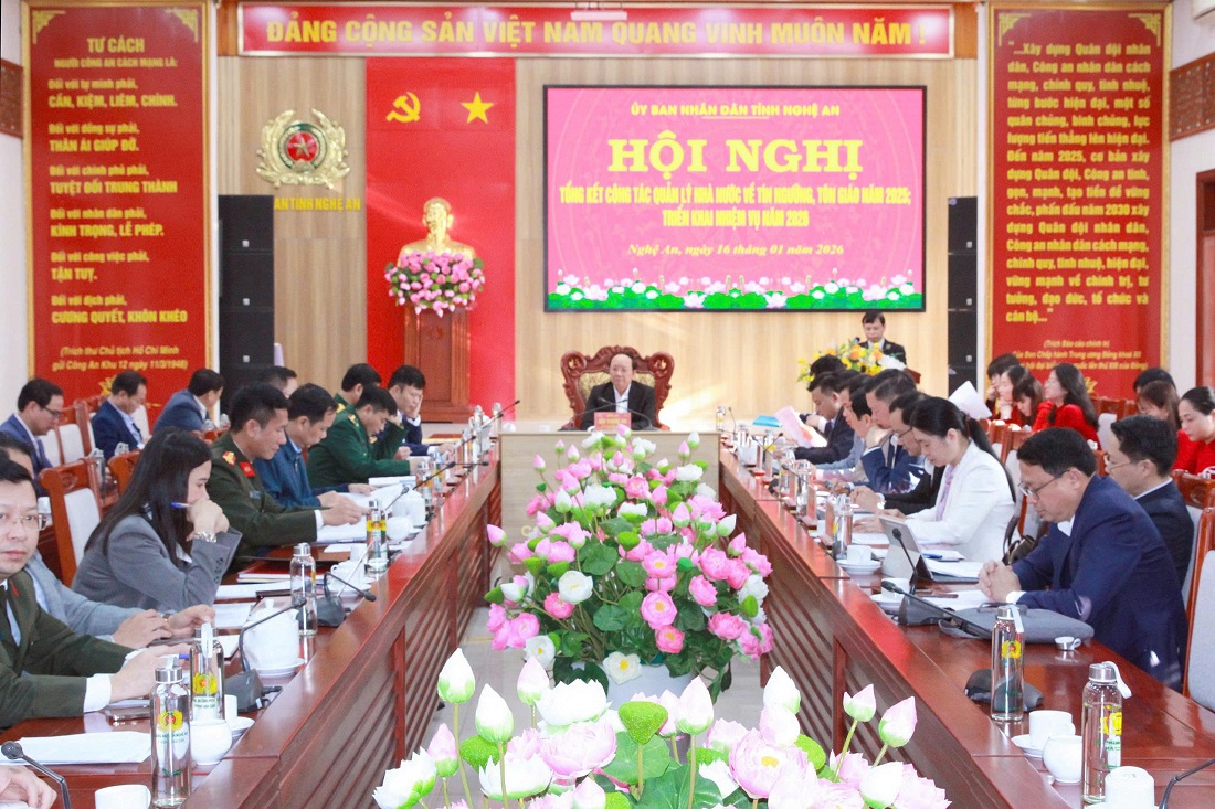 (Congan.nghean.gov.vn)-Sáng 16/01/2026, UBND tỉnh Nghệ An tổ chức Hội nghị tổng kết công tác quản lý nhà nước về tín ngưỡng, tôn giáo năm 2025, triển khai nhiệm vụ năm 2026.