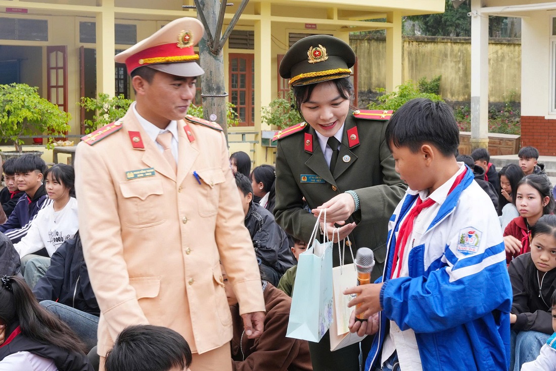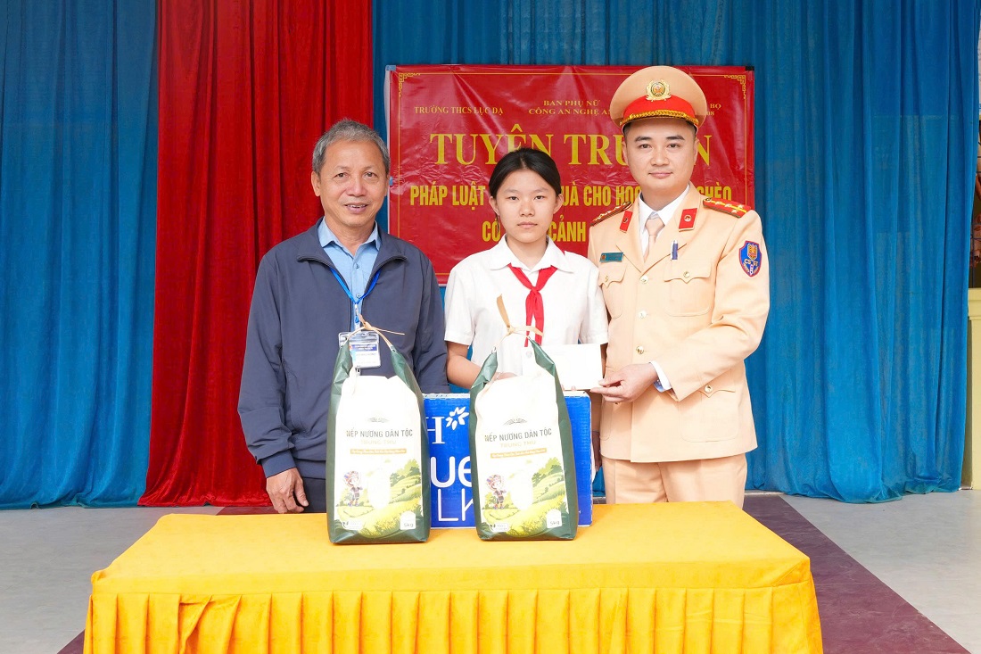 Bên cạnh tuyên truyền, Ban Phụ nữ và Đội CSGT đường bộ số 2 trao tặng nhiều phần quà ý nghĩa đến học sinh có hoàn cảnh khó khăn, kịp thời động viên, khích lệ tinh thần vượt khó, vươn lên trong học tập. Nhân dịp này, Đoàn công tác đến thăm, tặng quà Tết 02 em là “con đỡ đầu” của Đội CSGT đường bộ số 2 là Lô Gia Hân và Lộc Vinh Quang, học sinh Trường THCS Lục Dạ; đồng thời ân cần thăm hỏi, động viên các em tiếp tục nỗ lực học tập, rèn luyện ý chí, nghị lực, vươn lên trong cuộc sống.