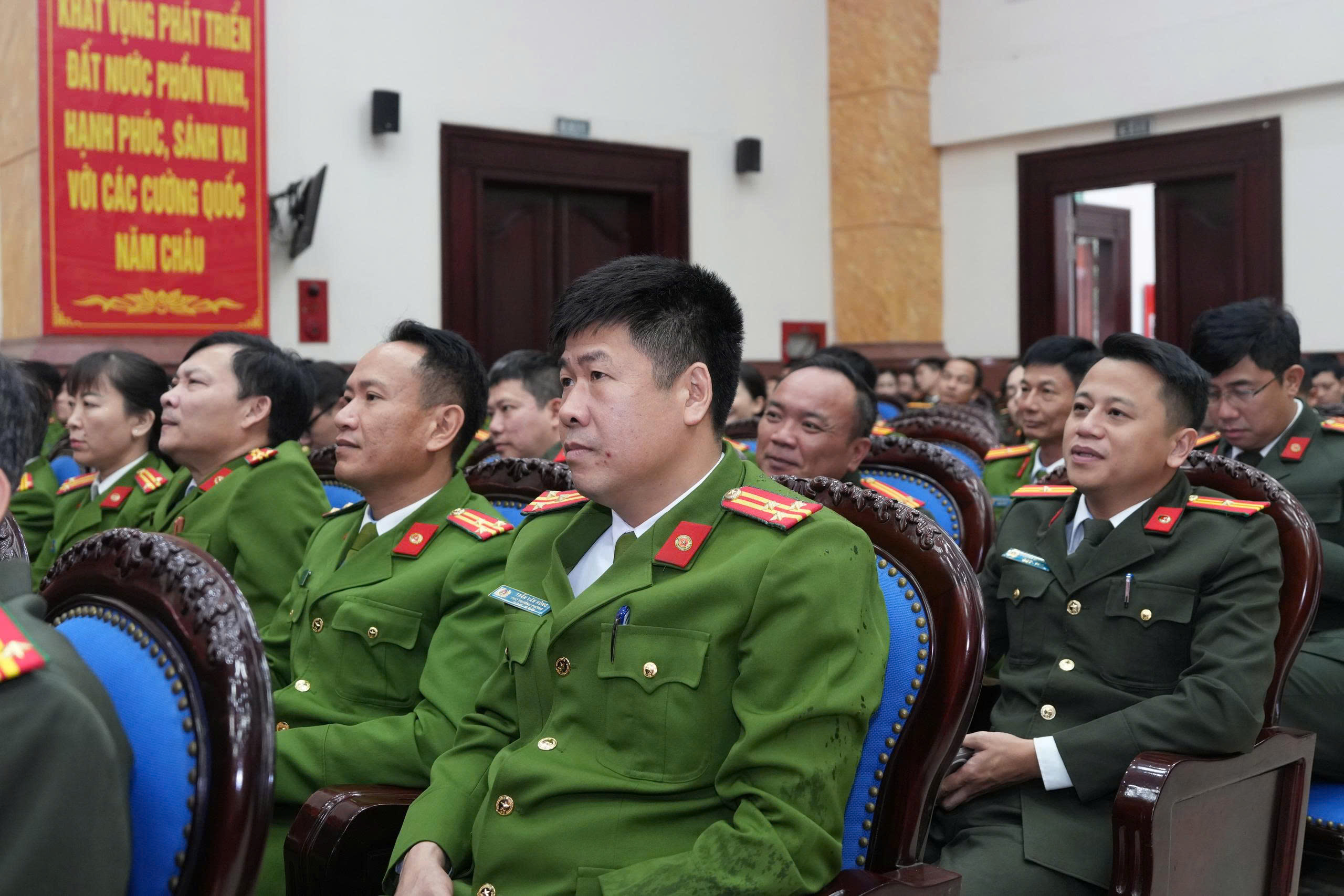 Ngay trong sáng 25/02/2026, tại Hội trường Công an tỉnh, đồng chí Đại tá Trần Hồng Quang, Phó Bí thư Đảng ủy, Phó Giám đốc Công an tỉnh chủ trì cùng lãnh đạo các phòng và đảng viên, cán bộ, chiến sỹ theo dõi truyền hình trực tiếp Hội nghị toàn quốc quán triệt Nghị quyết số 79 và Nghị quyết số 80 của Bộ Chính trị. Các đồng chí Lãnh đạo Công an dự Hội nghị trực tuyến tại điểm cầu do Tỉnh uỷ tổ chức.