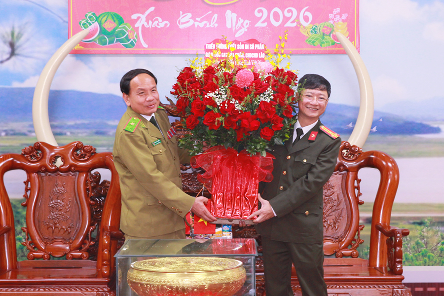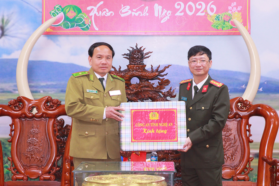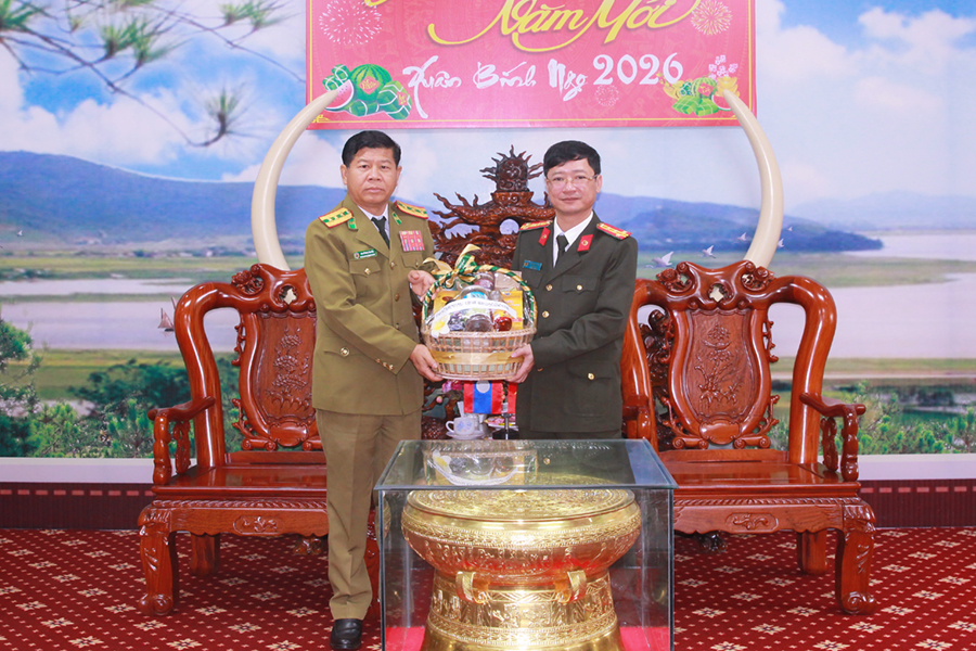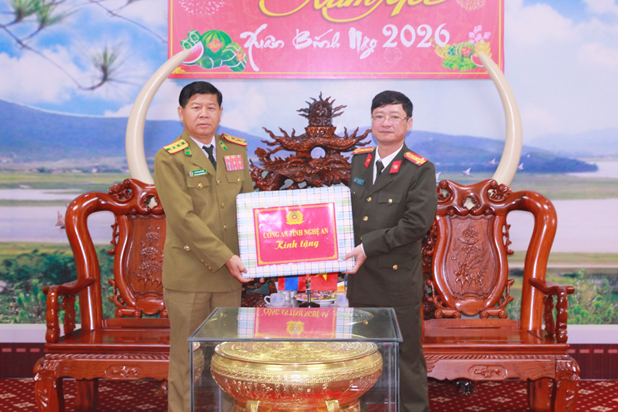 (Congan.nghean.gov.vn)-Nhân dịp đất nước ta chuẩn bị đón Tết cổ truyền Xuân Bính Ngọ 2026, sáng 03/02/2026, Đoàn đại biểu Công an tỉnh Hủa Phăn và Đoàn đại biểu Bô Ly Khăm Xay (Nước CHDCND Lào) sang thăm và chúc Tết Công an tỉnh Nghệ An. Tiếp đoàn có đồng chí Đại tá Trần Ngọc Tuấn, Ủy viên Ban Thường vụ Đảng ủy, Phó Giám đốc Công an tỉnh cùng đại diện lãnh đạo các phòng Công an tỉnh.