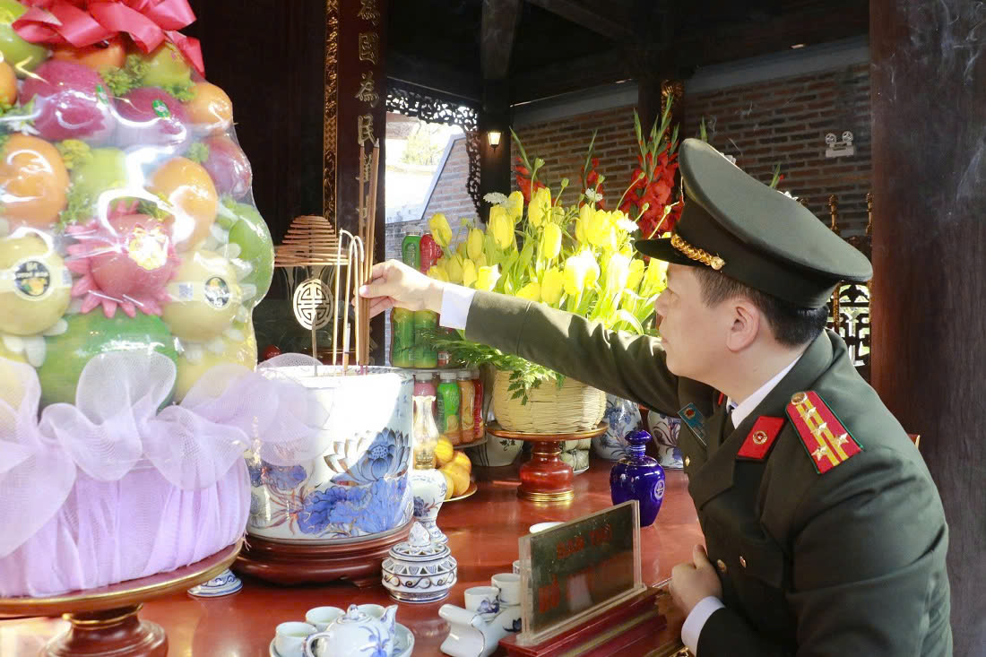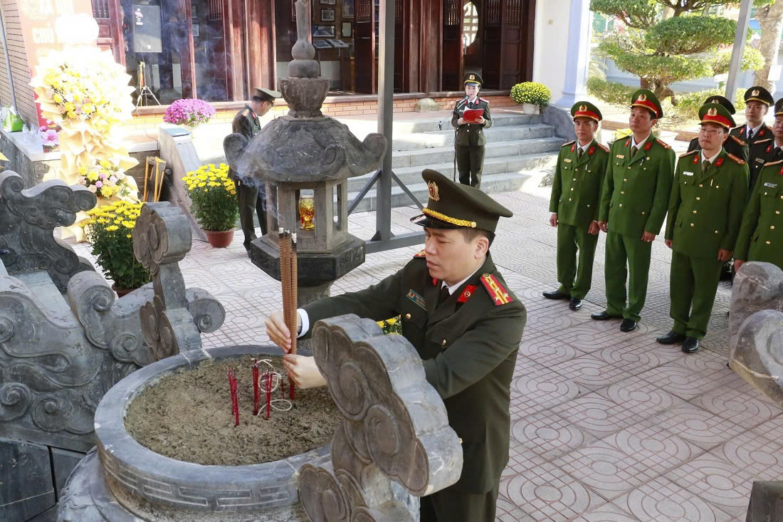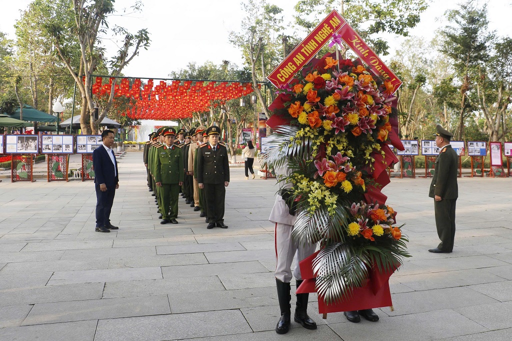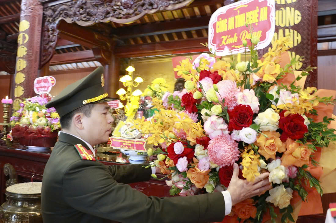 (congan.nghean.gov.vn)-Nhân dịp kỷ niệm 96 năm Ngày thành lập Đảng Cộng sản Việt Nam (03/02/1930 - 03/02/2026) và đón Tết nguyên đán Bính Ngọ 2026, sáng 13/02/2026, Đoàn đại biểu Công an tỉnh Nghệ An do đồng chí Đại tá Trần Hồng Quang, Phó Bí thư Đảng ủy, Phó Giám đốc Công an tỉnh làm Trưởng đoàn đến dâng hoa, dâng hương tại Khu di tích Quốc gia đặc biệt Kim Liên, Đền Chung Sơn (xã Kim Liên), và Khu lưu niệm Tổng Bí thư Lê Hồng Phong (Hưng Nguyên Nam) và Nhà tưởng niệm Bộ trưởng Trần Quốc Hoàn (xã Thiên Nhẫn).