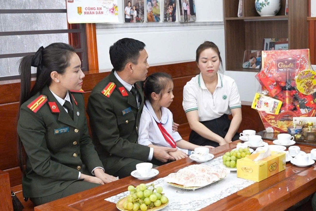 (Congan.nghean.gov.vn)-Nhân dịp Tết Nguyên đán Bính Ngọ, chiều 05/02/2026, Đoàn công tác Phòng Tổ chức cán bộ Công an tỉnh đến thăm hỏi, động viên và tặng quà Tết em Sầm Gia Hân - con đỡ đầu của đơn vị, là con gái Liệt sĩ Sầm Quốc Nghĩa.