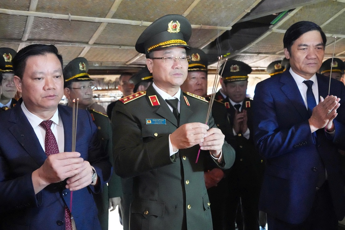 | Đồng chí Thượng tướng Phạm Thế Tùng - Ủy viên Ban Chấp hành Trung ương Đảng, Ủy viên Ban Thường vụ Đảng ủy Công an Trung ương, Thứ trưởng Bộ Công an cùng Đoàn đại biểu dâng hương tại Đền Chung Sơn |