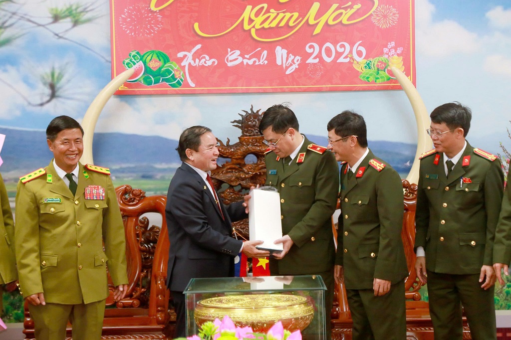 Nhân dịp đón Xuân, tỉnh Xiêng Khoảng tặng quà, gửi lời chúc mừng năm mới đến Lãnh đạo, cán bộ, chiến sĩ Công an tỉnh Nghệ An trên tinh thần đoàn kết, hợp tác hữu nghị mãi mãi bền chặt.