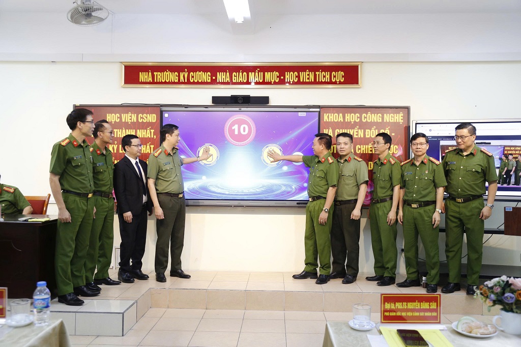 Tham dự chương trình tại điểm cầu Học viện CSND có đồng chí Đại tá, TS. Hoàng Đại Nghĩa - Phó Cục trưởng Cục Đào tạo, Bộ Công an; Đại tá, PGS.TS. Nguyễn Đăng Sáu - Phó Giám đốc Học viện CSND; đồng chí Vũ Đăng Khoa - Phó Tổng giám đốc, Tổng công ty Viễn thông MobiFone, Bộ Công an; đại diện Cục Công nghệ thông tin, Bộ Công an; đại diện lãnh đạo các đơn vị thuộc Học viện CSND.