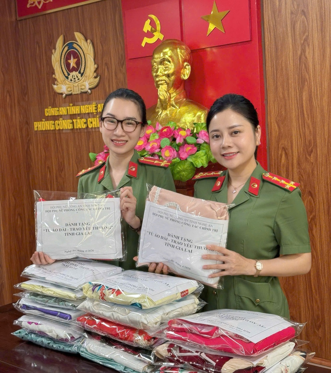 (Congan.nghean.gov.vn)-Hưởng ứng Chương trình “Đồng hành cùng phụ nữ biên cương” năm 2026, Ban Phụ nữ Công an nhân dân (CAND) triển khai mô hình “Tủ áo dài - Trao yêu thương” với nhiều cách làm sáng tạo, thiết thực. Trong đó, Ban Phụ nữ Công an Nghệ An nổi bật với cách thức tổ chức bài bản, linh hoạt, góp phần lan tỏa tinh thần sẻ chia, giá trị nhân ái đến điểm trường khó khăn tại tỉnh Gia Lai.