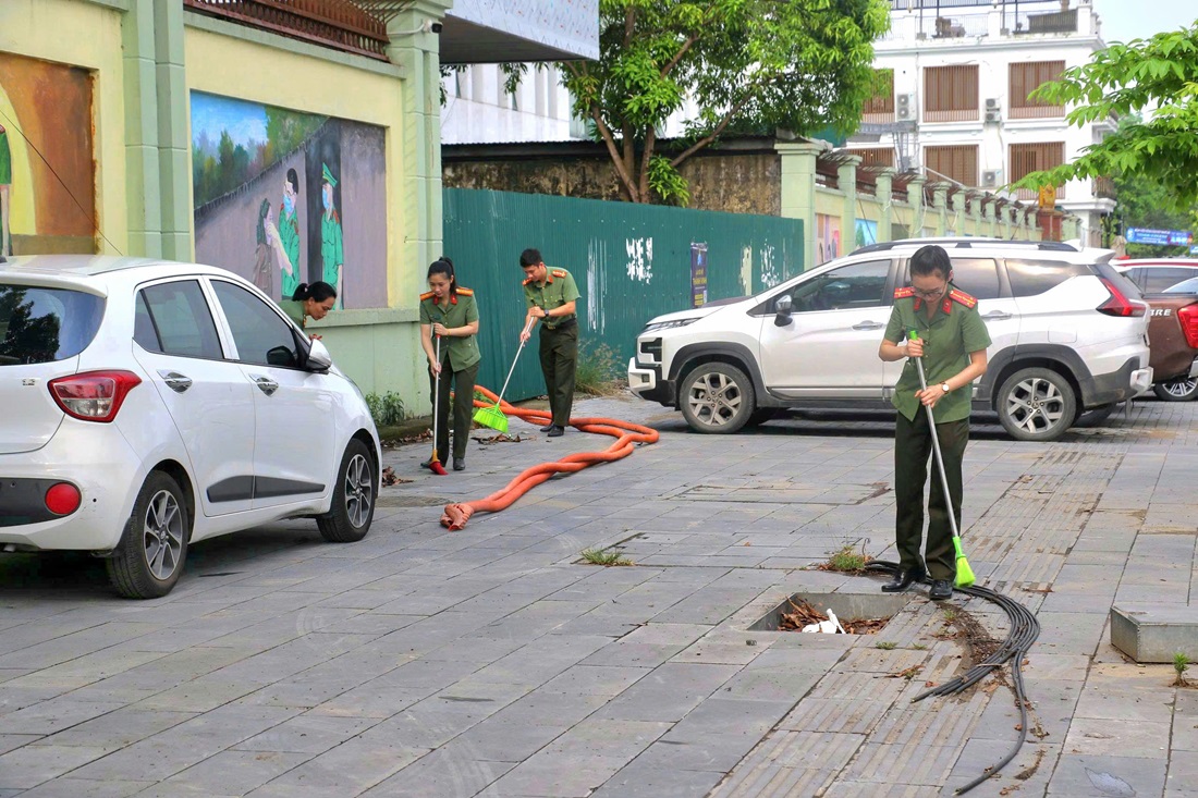 | Tổ chức tổng dọn vệ sinh môi trường xung quanh trụ sở Công an tỉnh |