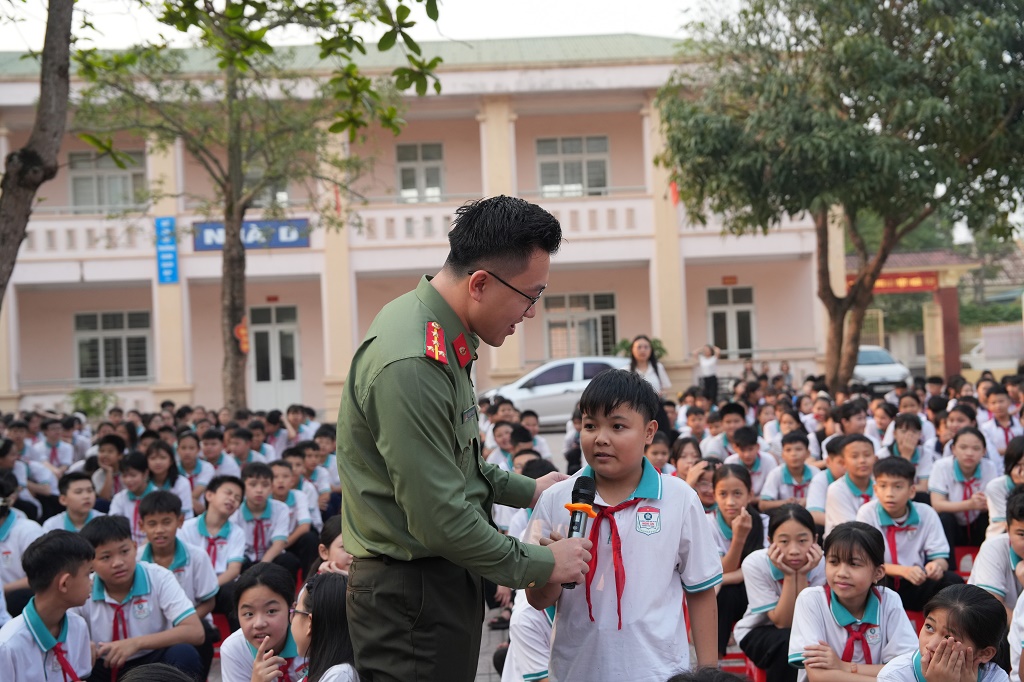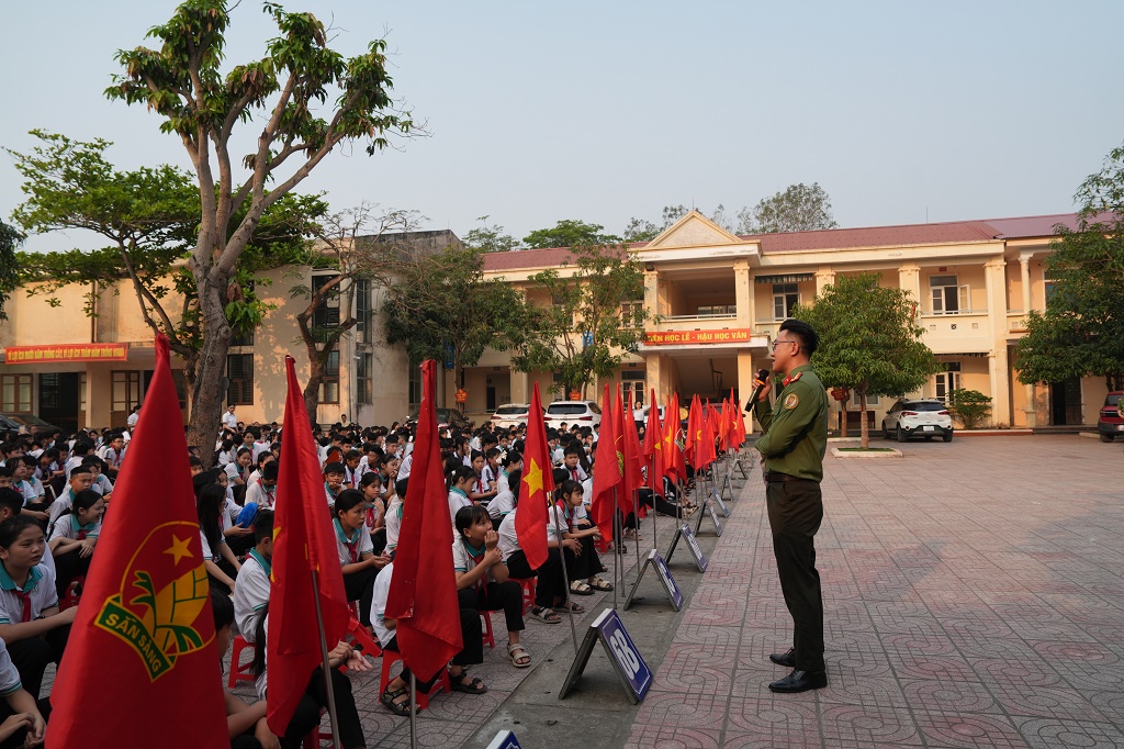 (Congan.nghean.gov.vn)-Ngày 06/4/2026, Phòng Quản lý xuất nhập cảnh Công an Nghệ An phối hợp Cảng hàng không quốc tế Vinh và Công an phường Vinh Phú tổ chức tuyên truyền quy định sử dụng thiết bị bay không người lái và những hành vi ảnh hưởng đến hoạt động bay tại khu vực Cảng hàng không quốc tế Vinh cho học sinh Trường THCS Nghi Ân.
