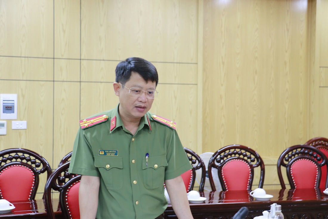 | Đồng chí Đại tá Trần Hồng Quang, Phó Bí thư Đảng ủy, Phó Giám đốc, Chủ nhiệm UBKT Đảng ủy Công an tỉnh phát biểu chỉ đạo tại Hội nghị |