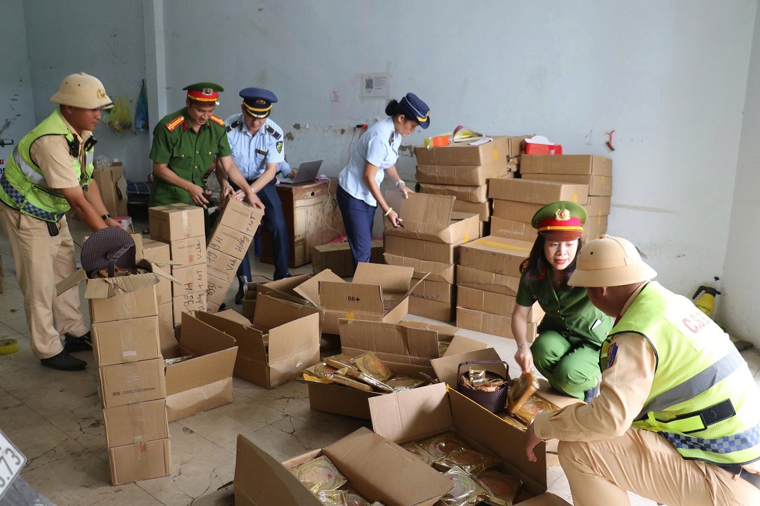 Ngày 17/9/2025, Phòng Cảnh sát kinh tế Công an tỉnh Nghệ An chủ trì, phối hợp với Tổ Cảnh sát giao thông số 4 (Phòng Cảnh sát giao thông) và Đội Quản lý thị trường số 3, Chi cục Quản lý thị trường Nghệ An đồng loạt kiểm tra các cơ sở kinh doanh bánh Trung thu trên địa bàn. Qua kiểm tra, lực lượng chức năng đã phát hiện, xử lý 2 cơ sở kinh doanh bánh trung thu nhập lậu, không rõ nguồn gốc xuất xứ.