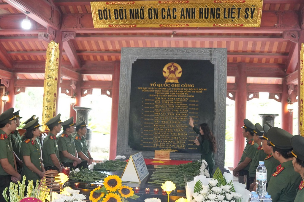 Tiếp đó, đoàn đã đến dâng hoa, dâng hương tưởng niệm các anh hùng liệt sĩ tại Khu Di tích lịch sử Quốc gia Truông Bồn; bày tỏ tấm lòng thành kính, cảm phục, tri ân sâu sắc đối với các anh hùng đã hy sinh vì độc lập, tự do của Tổ quốc. Những chiến công và sự hy sinh của các chị, các anh mãi mãi khắc ghi trong lòng dân tộc Việt Nam. Lực lượng An ninh nhân dân nguyện hứa sẽ cố gắng, nỗ lực vượt qua mọi khó khăn, thử thách, hoàn thành xuất sắc mọi nhiệm vụ, bảo vệ cuộc sống bình yên, hạnh phúc của Nhân dân.