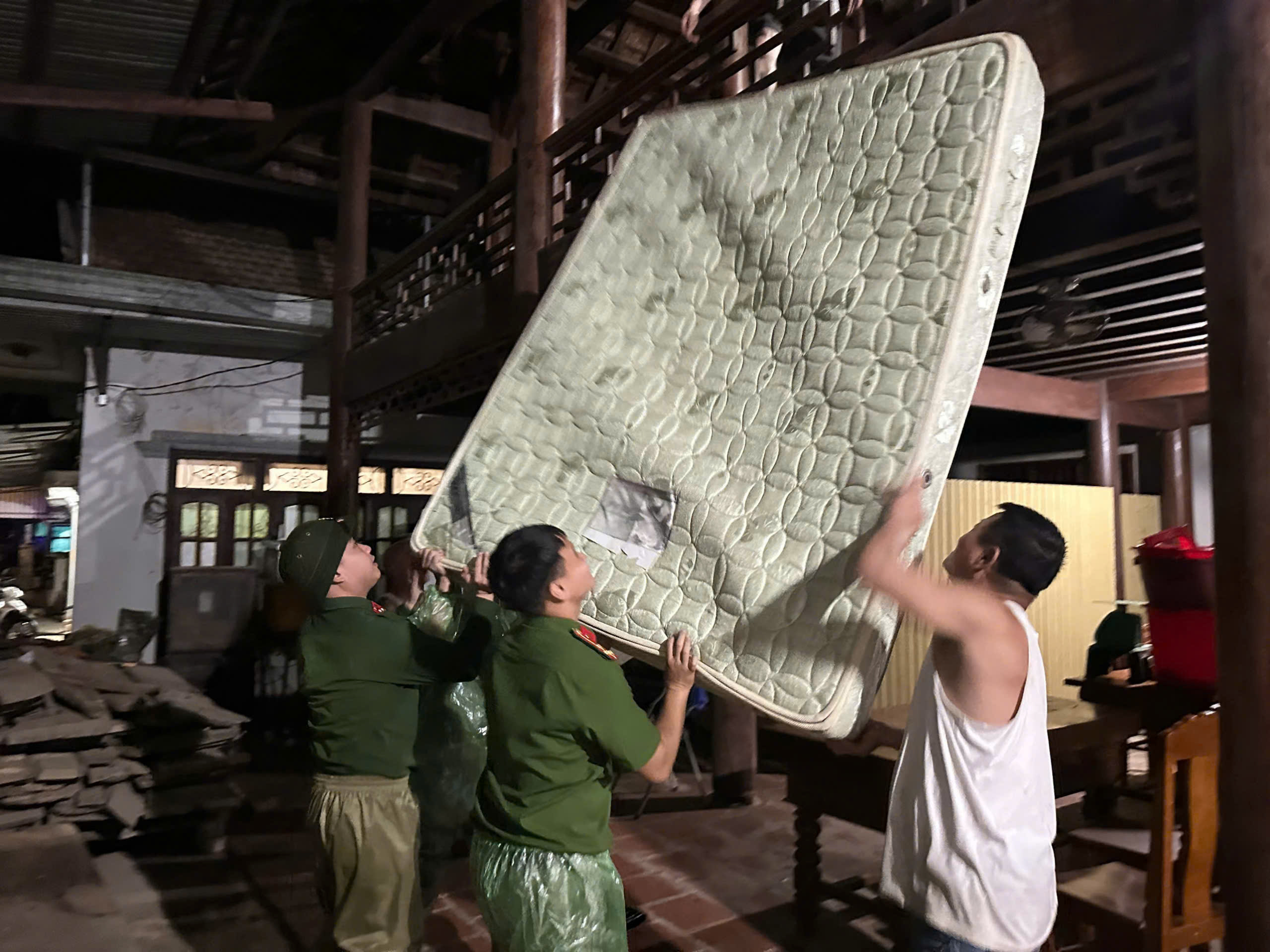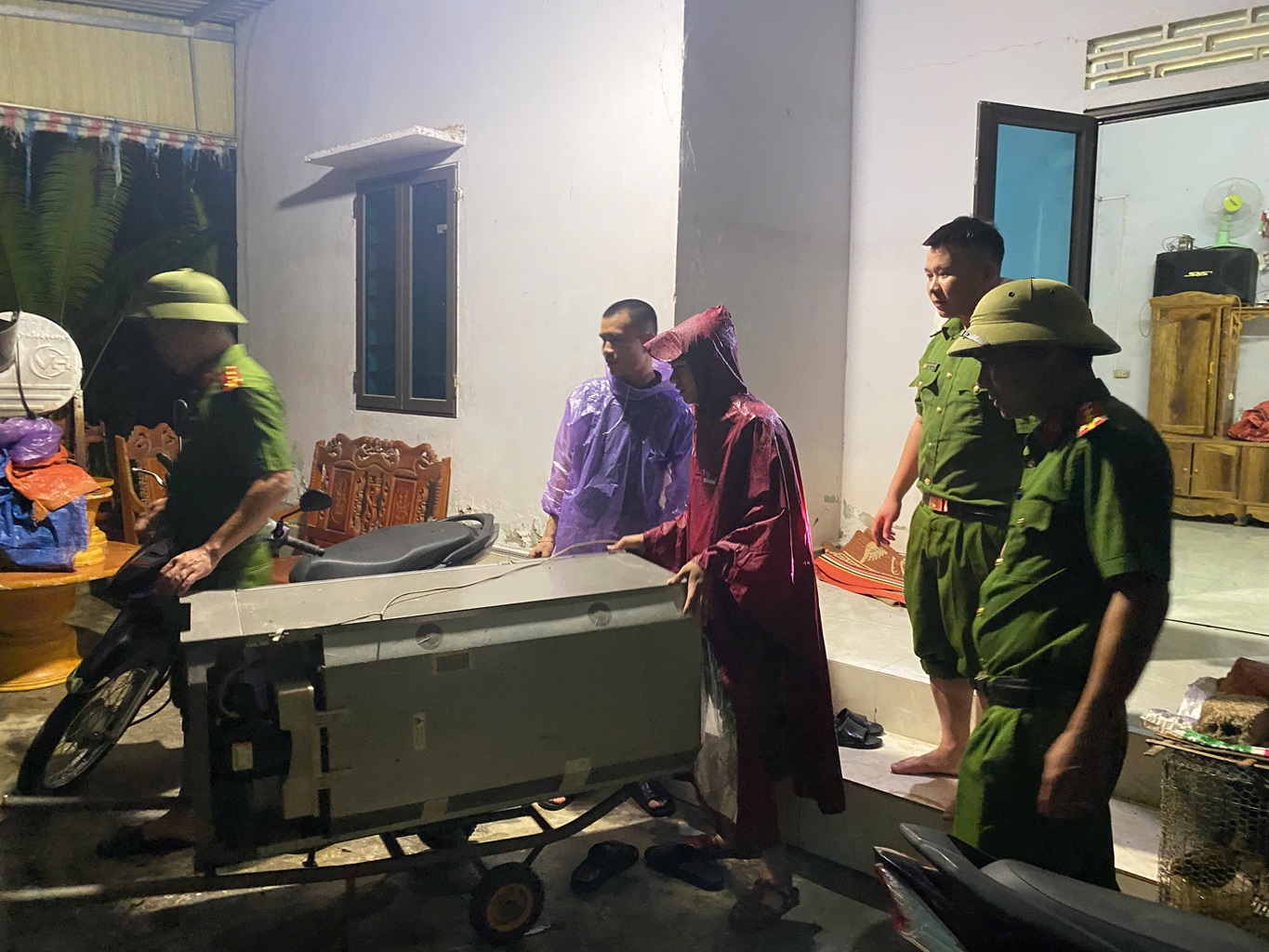 | Công an xã Châu Tiến có mặt tại hiện trường giúp bà con Nhân dân di dời tài sản |