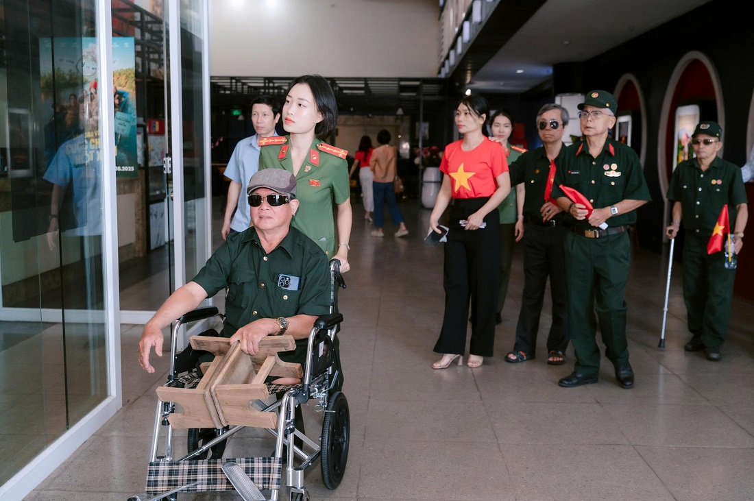 | Ban Phụ nữ Công an tỉnh hỗ trợ các bác là cựu chiến binh, thương bệnh binh vào rạp chiếu phim |