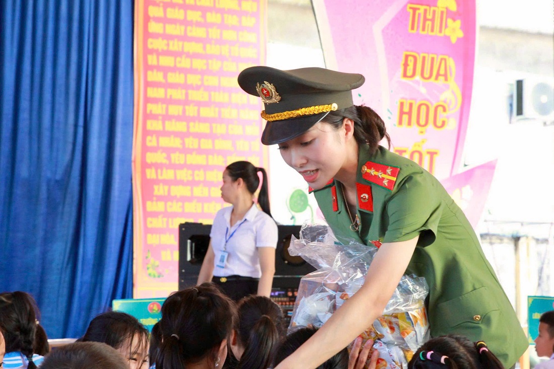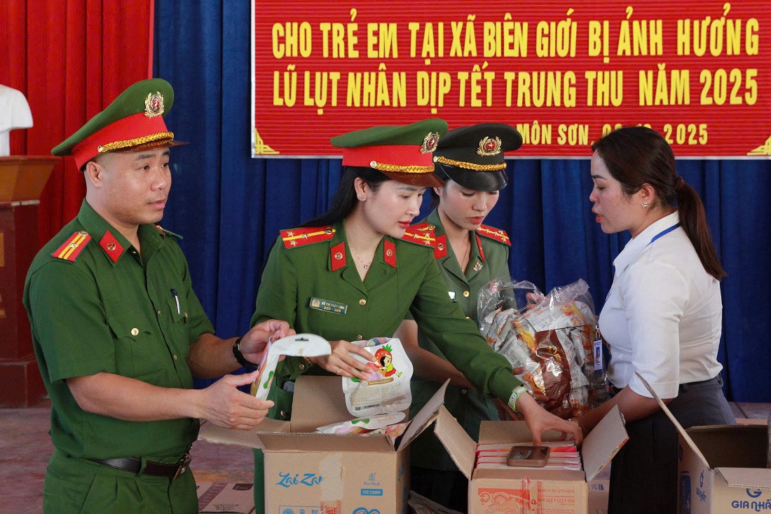 Tại Trường Tiểu học Môn Sơn 2, đại diện Lãnh đạo Phòng Công tác Chính trị, Ban Phụ nữ Công an tỉnh và các cán bộ, chiến sĩ các đơn vị đã trao tặng 10 suất quà là tiền mặt tặng học sinh có hoàn cảnh khó khăn và 550 suất quà trung thu cho các em học sinh của Trường.
