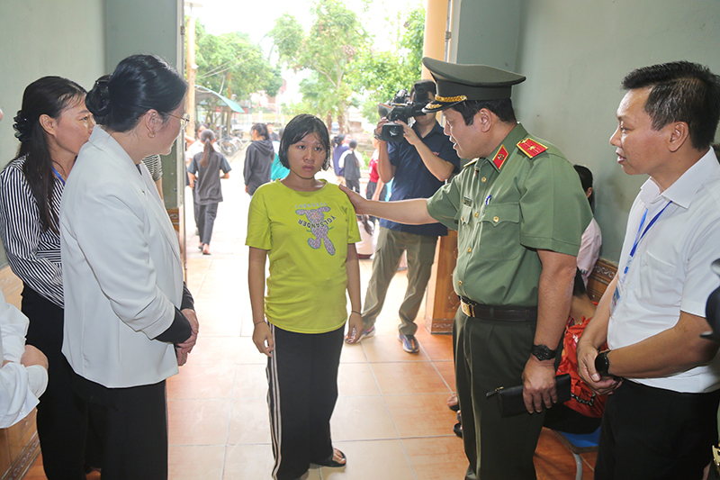 | Thừa ủy quyền của Lãnh đạo Bộ Công an, đồng chí Thiếu tướng Nguyễn Hồng Nguyên trao quà tặng lãnh đạo, cán bộ, nhân viên Trung tâm công tác xã hội tỉnh Nghệ An |