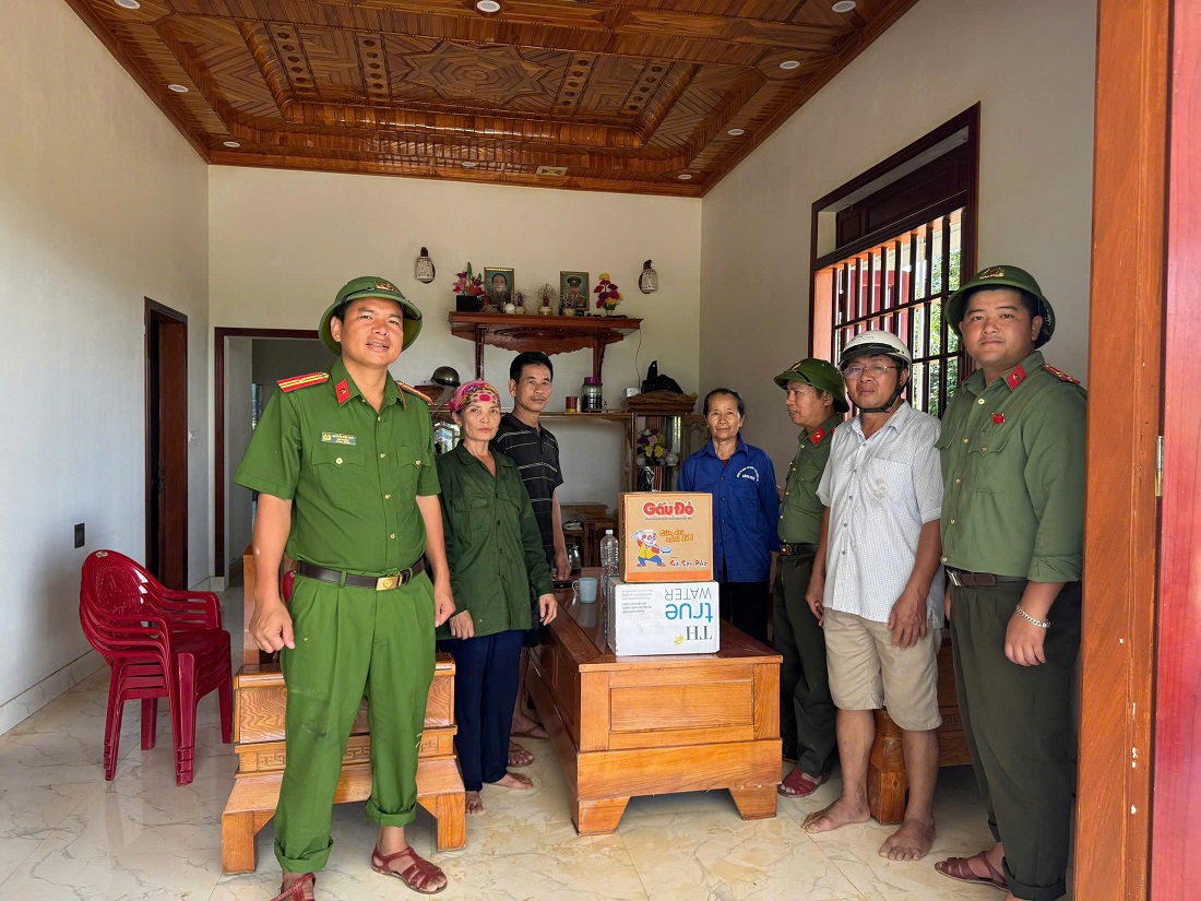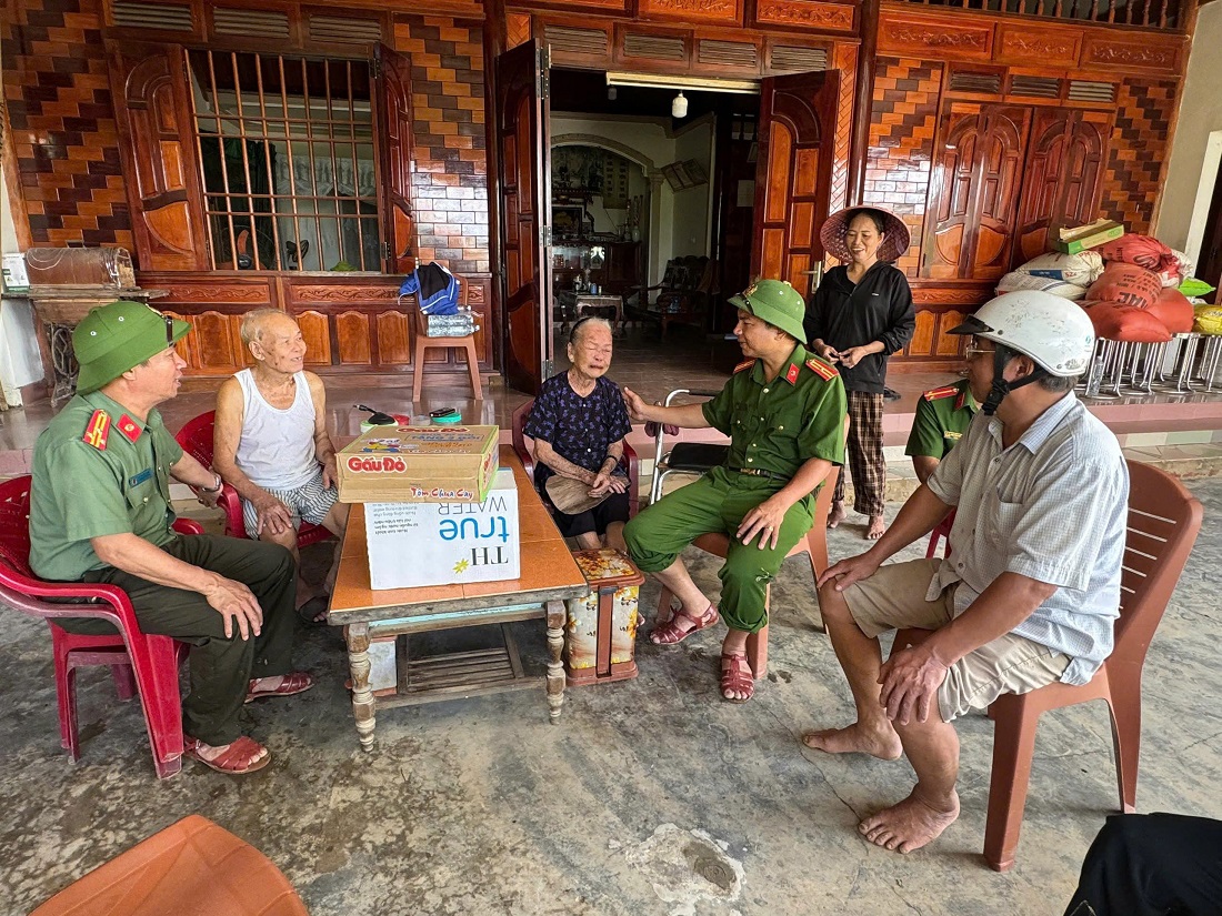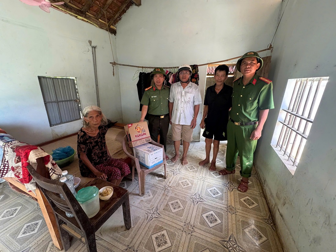 | Lực lượng Công an sẻ chia, động viên trường hợp người già, neo đơn, các hoàn cảnh đặc biệt khó khăn chịu ảnh hưởng nặng nề bởi bão số 10 gây ra |