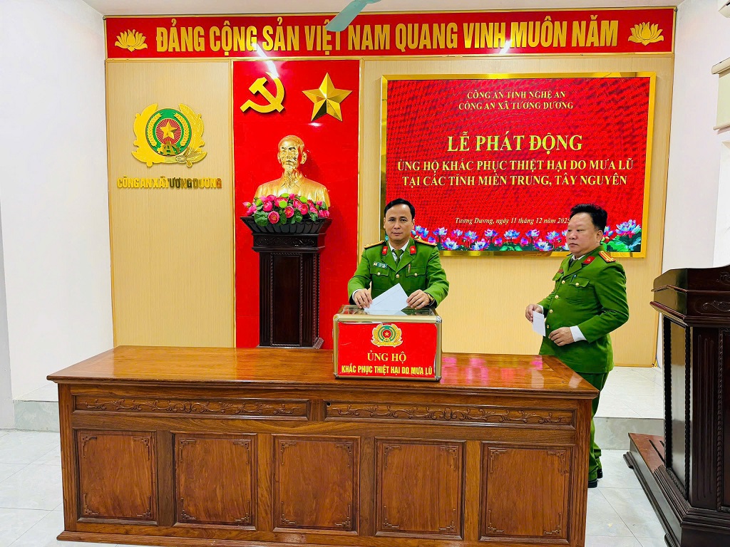 Mưa lũ gần đây tại miền Trung và Tây Nguyên gây ra những hậu quả vô cùng nặng nề về người, tài sản và môi trường, với thiệt hại kinh tế ước tính lên tới hàng chục nghìn tỷ đồng. Trước tình hình đó, Công an xã Tương Dương xác định việc kịp thời chung tay chia sẻ là trách nhiệm, là tình cảm của mỗi cán bộ, chiến sĩ.