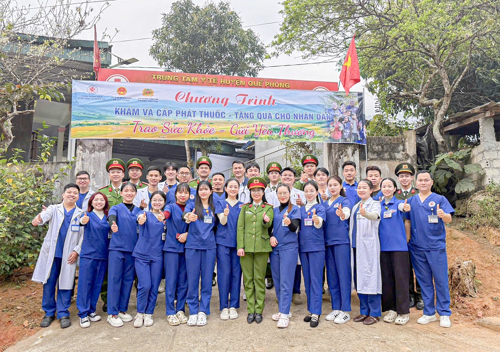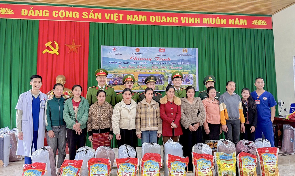 (Congan.nghean.gov.vn)-Tiếp nối hành trình “Tết vì người nghèo” năm 2026, chia sẻ khó khăn với đồng bào vùng biên giới và hưởng ứng phong trào thi đua “Ba nhất” (Kỷ luật nhất - Trung thành nhất - Gần dân nhất), Chi đoàn Công an phường Vinh Phú phối hợp với Bệnh viện Đa khoa 115 tổ chức Chương trình “Trao sức khỏe - Gửi yêu thương” tới người dân bản Nậm Giải, xã Quế Phong.