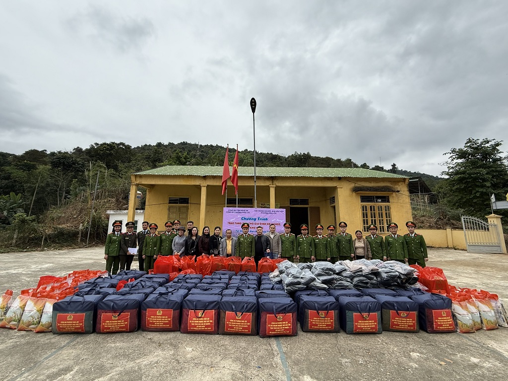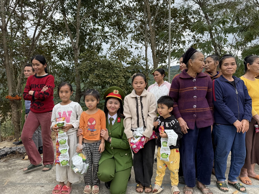 | 80 suất quà được Công an phường Vinh Lộc cùng nhà hảo tâm, doanh nghiệp trao tặng tới bà con bản Đình Hương, xã Tam Quang |
