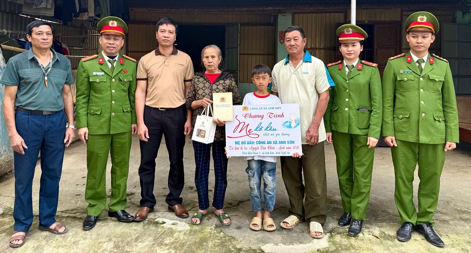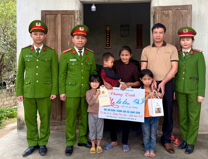 Trong khuôn khổ chương trình, Công an xã cùng nhà đồng hành nhận đỡ đầu 03 cháu đều trú tại xã Anh Sơn, tỉnh Nghệ An có hoàn cảnh đặc biệt khó khăn: Cháu Tô Thị Vui, sinh năm 2016, trú tại thôn Đức Sơn 4; cháu Nguyễn Văn Chiến, sinh năm 2016, trú tại thôn Kim Nhan 1; cháu Lương Văn Hào, sinh năm 2023, trú tại thôn Phúc Sơn 1 với mức hỗ trợ 12 tháng năm 2026 với mức 500.000 đồng/cháu/tháng. Đồng thời trao quà Tết Nguyên đán trị giá 1.000.000 đồng/cháu kèm quà tặng từ Công ty Xưởng Gừng An Khương tài trợ.