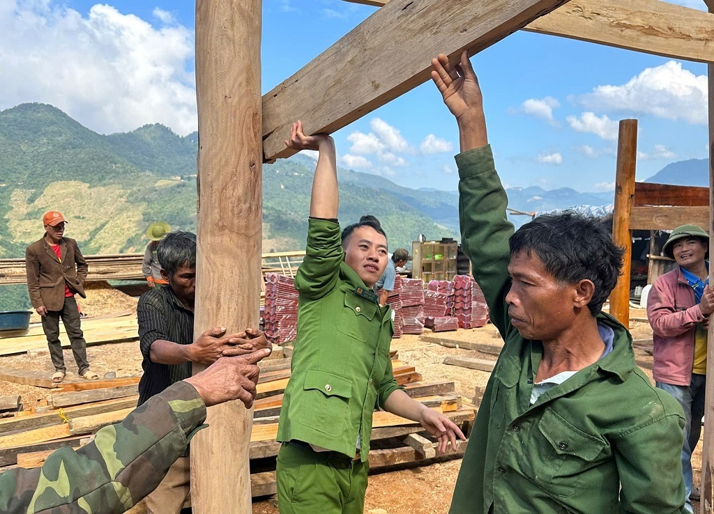 Theo đó, các hộ gia đình có nhà ở xuống cấp, không đảm bảo an toàn, được hỗ trợ di dời, dựng nhà ở mới. Công an xã cùng các lực lượng tham gia vận chuyển vật liệu, tháo dỡ nhà cũ, dựng khung nhà mới, hỗ trợ ngày công lao động, góp phần đẩy nhanh tiến độ xây dựng, giúp 03 hộ gia đình sớm ổn định chỗ ở.