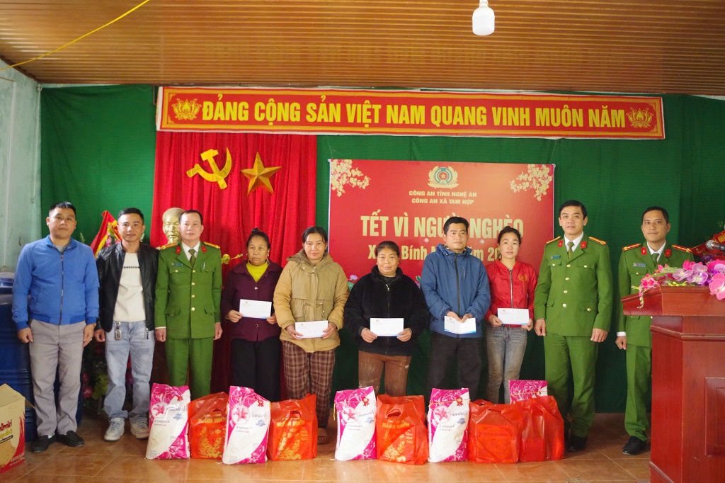 (Congan.nghean.gov.vn)-Hưởng ứng phát động của Lãnh đạo Công an tỉnh và của cấp ủy, chính quyền địa phương về việc ủng hộ, giúp đỡ người nghèo đón Tết Nguyên đán Bính Ngọ 2026, vừa qua, Công an xã Tam Hợp tổ chức trao tặng 20 suất quà trị giá 20 triệu đồng đến các hộ gia đình có hoàn cảnh khó khăn.