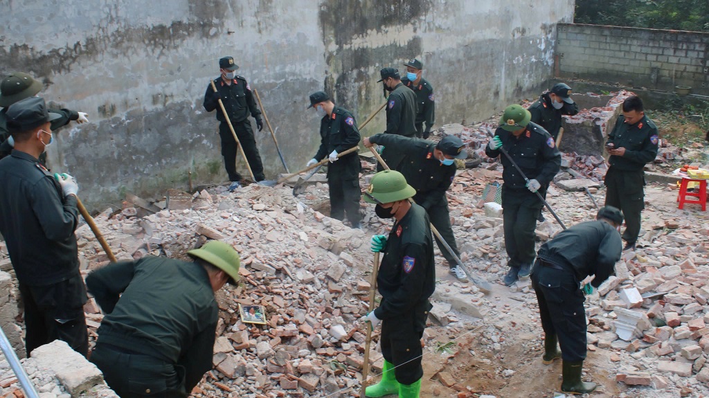 Do ảnh hưởng bão lũ, hai ngôi nhà ông Nguyễn Đình Inh và ông Lê Như Hoành tại thôn Hà Nội, xã Hoằng Sơn, tỉnh Thanh Hoá bị hư hỏng hoàn toàn. Là gia chính sách lại tuổi cao sức yếu, điều kiện kinh tế hết sức khó khăn nên để có kinh phí xây dựng ngôi nhà mới là điều không thể. Được sự hỗ trợ kinh phí của cấp ủy, chính quyền địa phương, nhà hảo tâm và sự giúp sức ngày công của cán bộ, chiến sĩ Trung đoàn Cảnh sát cơ động Bắc Trung Bộ, hai gia đình sẽ sớm có căn nhà mới để ổn định cuộc sống.