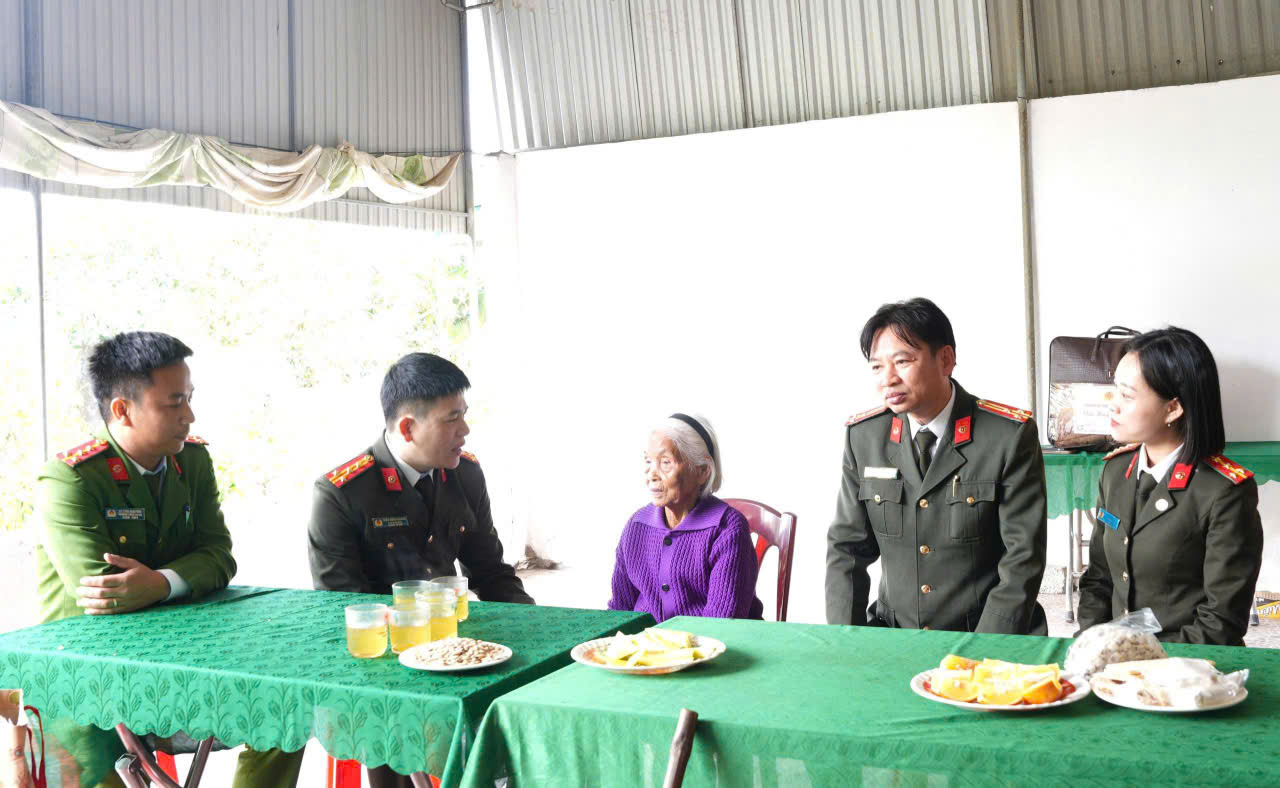 (Congan.nghean.gov.vn)-Nhân dịp Tết Nguyên đán Bính Ngọ 2026, sáng 04/2, Đoàn công tác của Công an tỉnh Nghệ An do đồng chí Đại tá Trần Hồng Quang, Phó Bí thư Đảng ủy, Phó Giám đốc Công an tỉnh làm Trưởng đoàn đến thăm hỏi, chúc Tết và tặng quà Bà mẹ Việt Nam Anh hùng Nguyễn Thị Năm trú tại xã Đại Đồng, tỉnh Nghệ An.