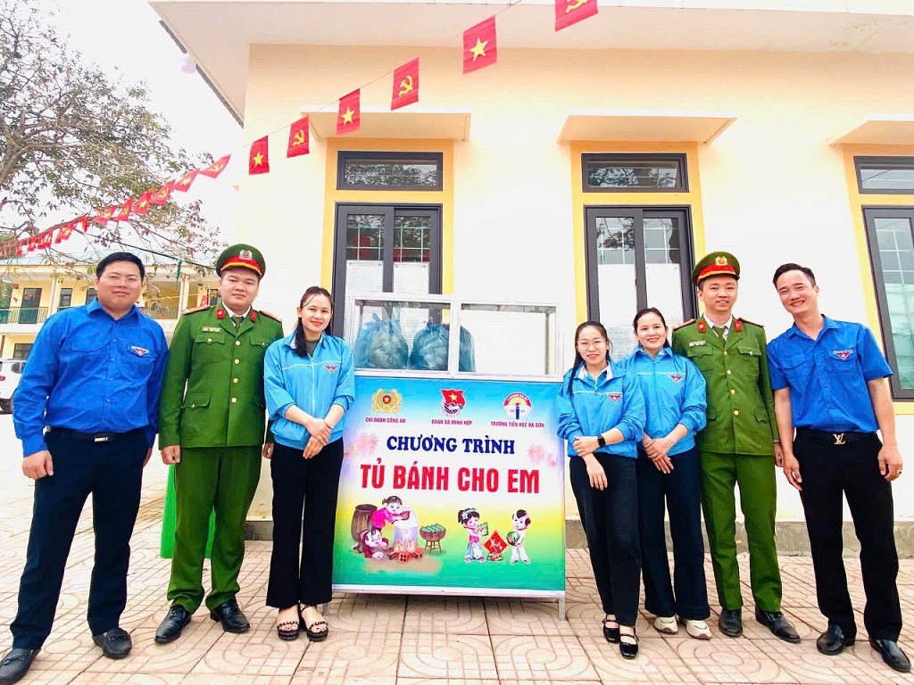 (Congan.nghean.gov.vn)-Nhằm phát huy tinh thần xung kích, tình nguyện vì cuộc sống cộng đồng và góp phần quan tâm, chăm sóc sức khỏe, bảo vệ thiếu niên nhi đồng. Đồng thời, tạo môi trường giáo dục nhân ái, lan toả tinh thần sẻ chia, phong trào “Vì em thân yêu”, sáng ngày 05/02/2026 Chi đoàn Công an xã Minh Hợp tiếp tục triển khai mô hình “Tủ bánh cho em” tại Trường Tiểu học Hạ Sơn thuộc xã Minh Hợp, tỉnh Nghệ An.