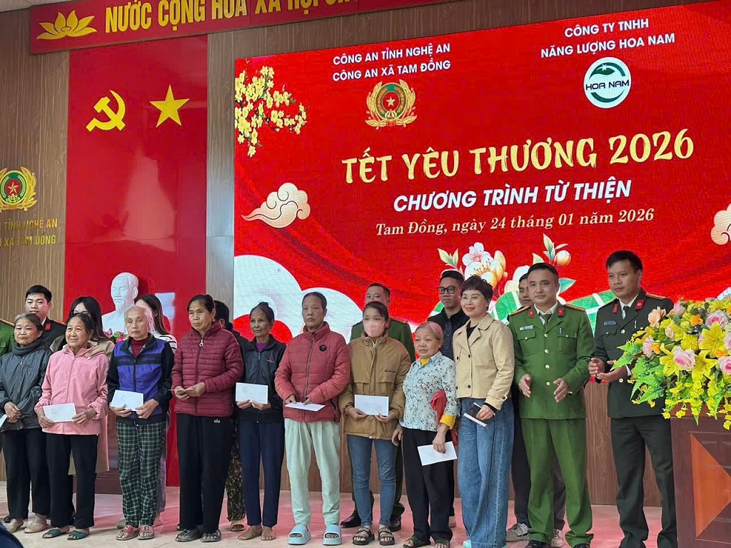 (Congan.nghean.gov.vn)-Công an xã Tam Đồng phối hợp Công ty TNHH Năng Lượng Hoa Nam và Đội xe 0 đồng Thanh Chương vừa tổ chức chương trình “Tết yêu thương 2026” nhằm chia sẻ, động viên hộ gia đình có hoàn cảnh đặc biệt khó khăn.