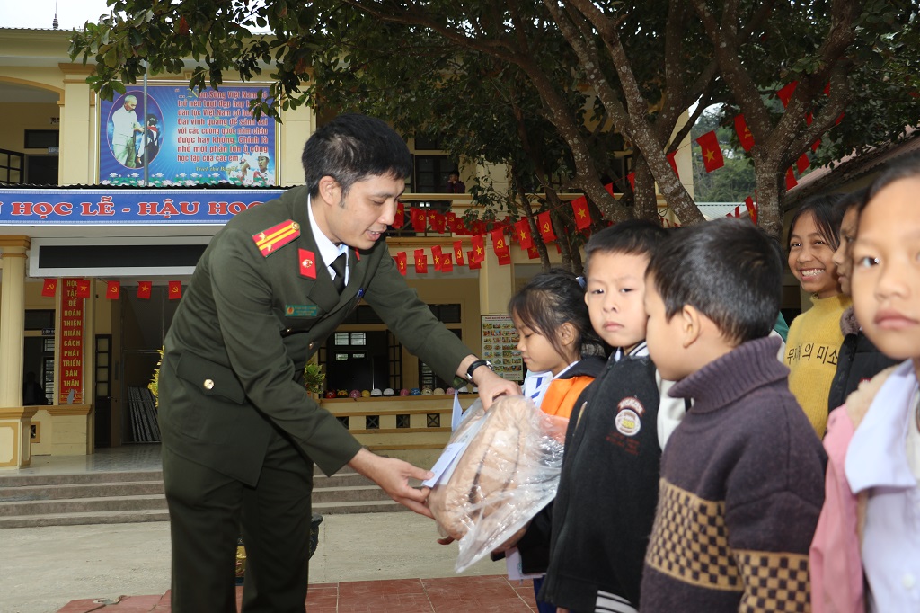 Tại Trường PTDTBT Tiểu học Yên Na, thay mặt Đoàn công tác, Trung tá Phạm Nhật Chung, Phó Trưởng phòng Tham mưu đã thăm hỏi, động viên và trao 40 suất quà (gồm tiền mặt, chăn ấm và bánh kẹo) đến học sinh có hoàn cảnh khó khăn. Ngoài ra, đoàn trao 80 suất quà (gồm tiền mặt và nhu yếu phẩm) tặng người dân có hoàn cảnh khó khăn với tổng giá trị gần 90 triệu đồng.