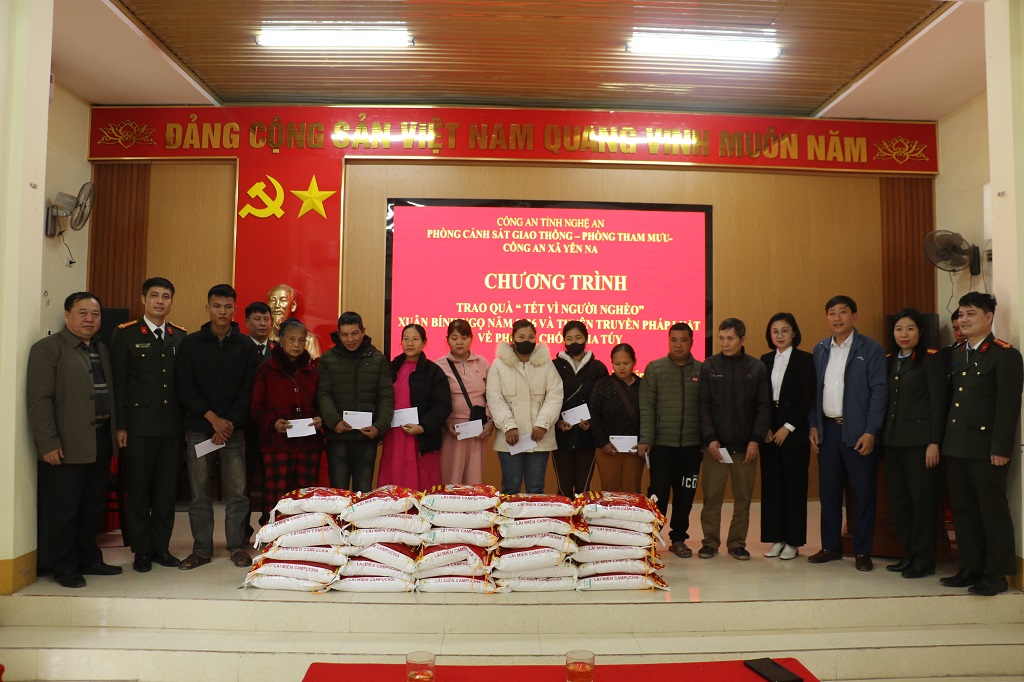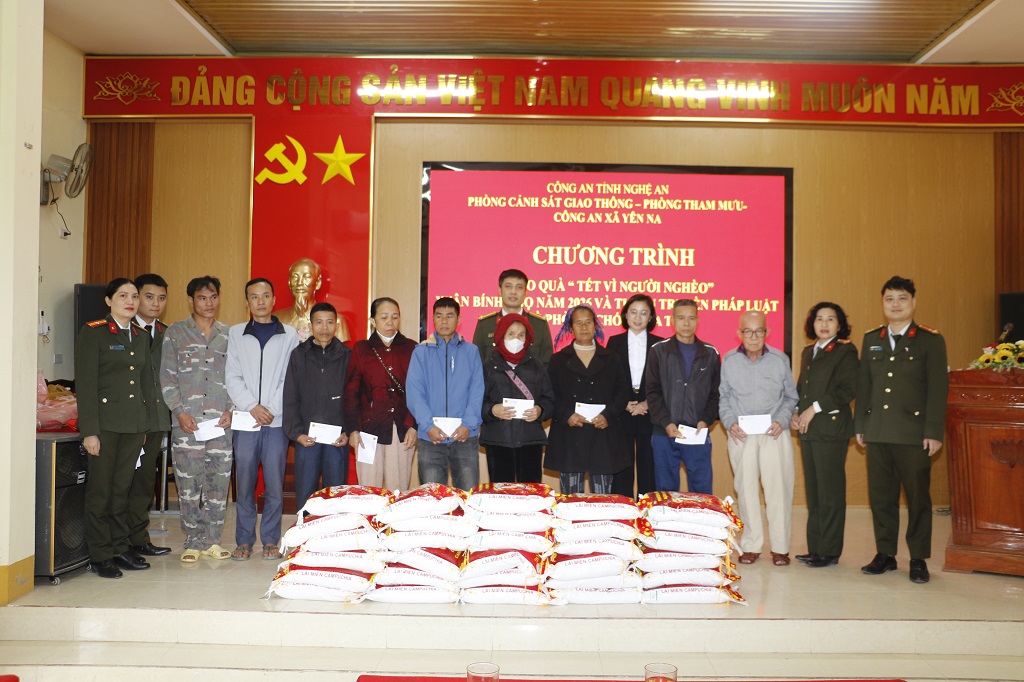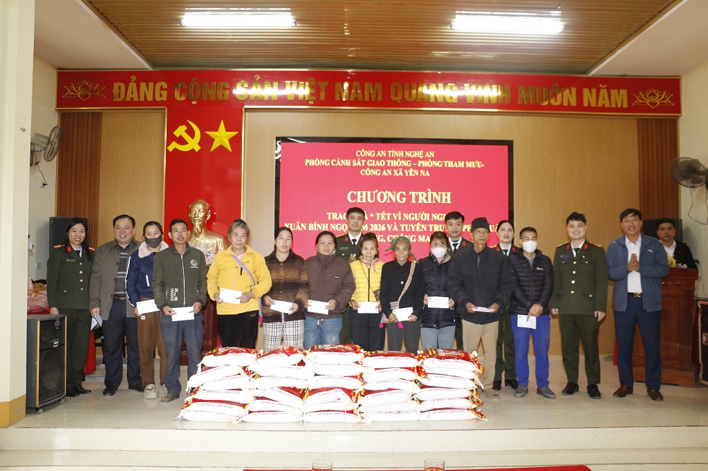 (Congannghean.vn)- Hưởng ứng chương trình "Tết vì người nghèo - Xuân Bính Ngọ năm 2026” của Công an tỉnh, ngày 02/2, Phòng Tham mưu Công an tỉnh phối hợp với Phòng Cảnh sát giao thông Công an tỉnh tổ chức trao tặng quà đến học sinh và hộ dân có hoàn cảnh khó khăn thuộc xã Yên Na.