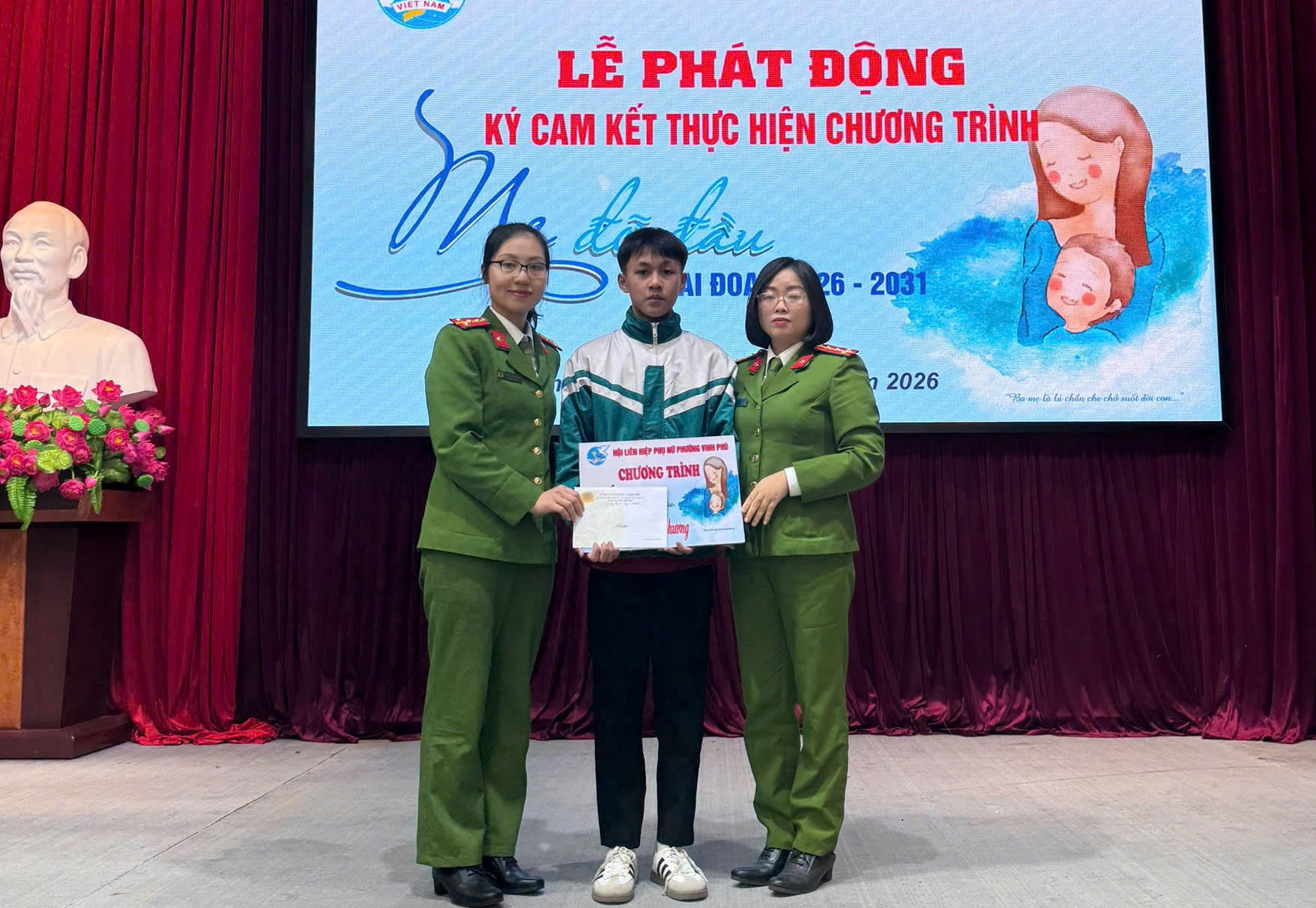 (Congan.nghean.gov.vn)Hưởng ứng phong trào thi đua “Ba nhất”, Chi hội Phụ nữ Công an phường Vinh Phú vừa tham gia ký kết chương trình “Mẹ đỡ đầu” năm 2026.