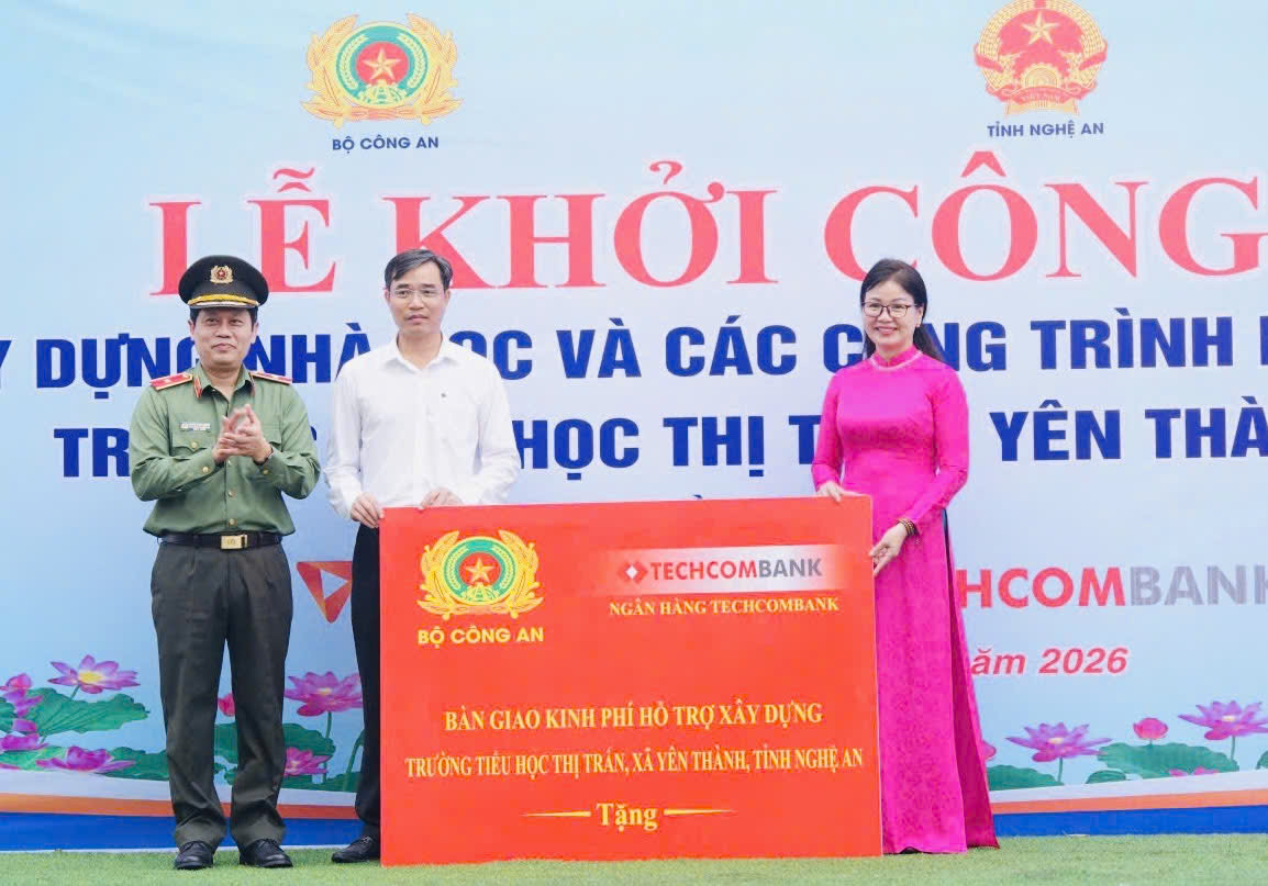 (Congan.nghean.gov.vn)-Sáng 24/3/2026, Bộ Công an phối hợp tỉnh Nghệ An tổ chức Lễ khởi công xây dựng nhà học và các công trình phụ trợ thuộc Trường Tiểu học thị trấn Yên Thành.