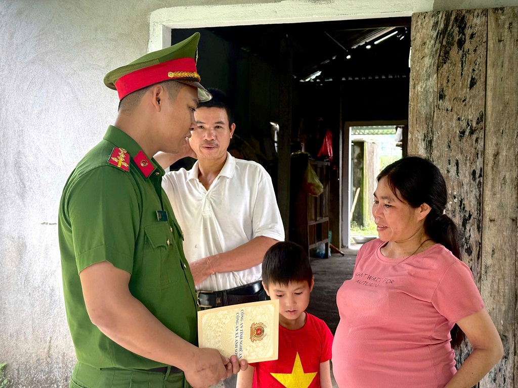 | Công an xã Anh Sơn thăm hỏi, động viên và trao quà tặng em Lô Bảo Yên |