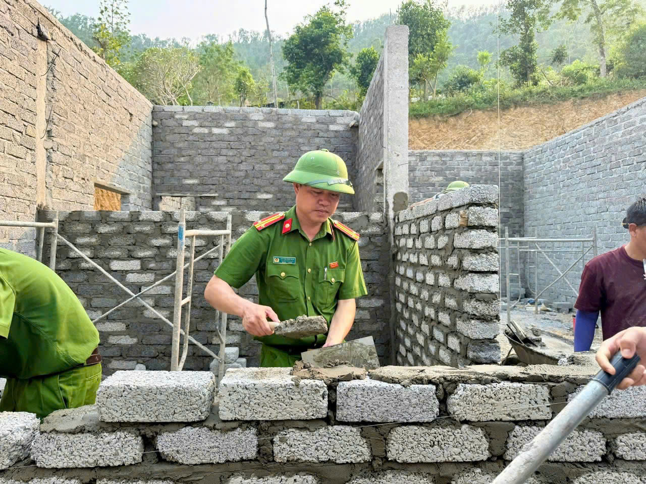 Trong quá trình thi công, cán bộ, chiến sĩ Công an xã cùng lực lượng ANTT ở cơ sở tham gia vận chuyển vật liệu, trộn vữa, xây tường, hỗ trợ phần việc cần thiết với tinh thần trách nhiệm cao, góp phần đẩy nhanh tiến độ xây dựng, sớm hoàn thiện ngôi nhà để gia đình bà Lam có nơi ở ổn định, an toàn.