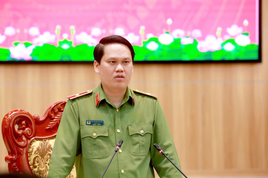 | Đồng chí Thiếu tướng Bùi Quang Thanh, Ủy viên Ban Thường vụ Tỉnh ủy, Bí thư Đảng ủy, Giám đốc Công an tỉnh phát biểu chỉ đạo tại buổi làm việc |