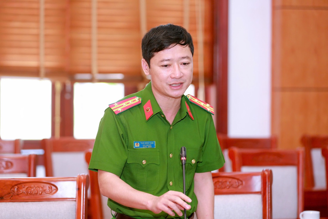 | Đồng chí Đại tá Trần Ngọc Tuấn, Phó Giám đốc Công an tỉnh phát biểu tại buổi làm việc |