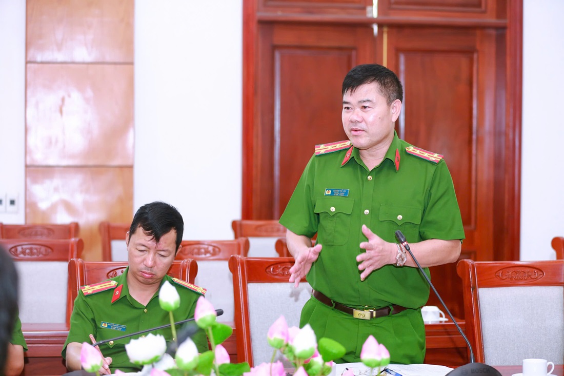 Tham dự buổi làm việc có các đồng chí Phó Giám đốc Công an tỉnh: Đại tá Nguyễn Duy Thanh, Thủ trưởng Cơ quan Cảnh sát điều tra Công an tỉnh và Đại tá Trần Ngọc Tuấn.