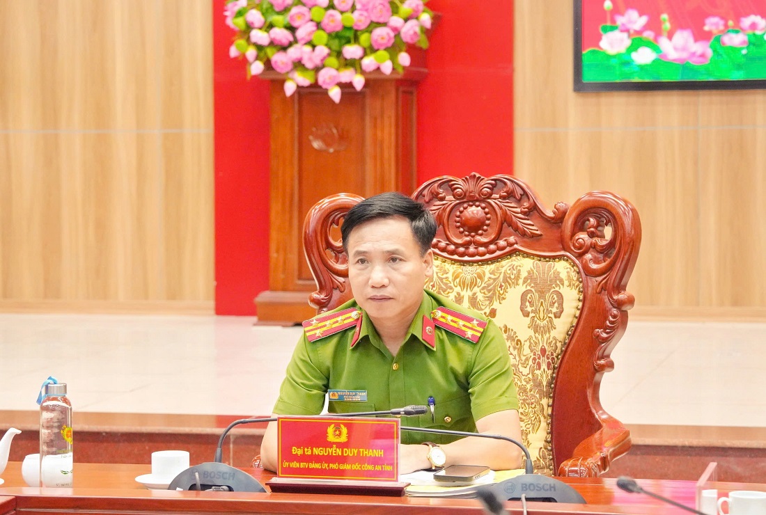 Dự và chỉ đạo Hội nghị có các đồng chí Thứ trưởng Bộ Công an: Thượng tướng Trần Quốc Tỏ, Ủy viên Trung ương Đảng dự tại điểm cầu Thành phố Hồ Chí Minh; Trung tướng Nguyễn Văn Long; Trung tướng Nguyễn Ngọc Lâm; Thiếu tướng Đặng Hồng Đức. Tại điểm cầu Công an tỉnh Nghệ An, đồng chí Đại tá Nguyễn Duy Thanh, Phó Giám đốc Công an tỉnh chủ trì hội nghị.