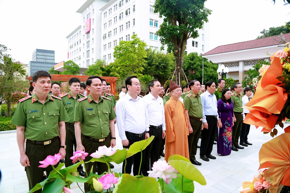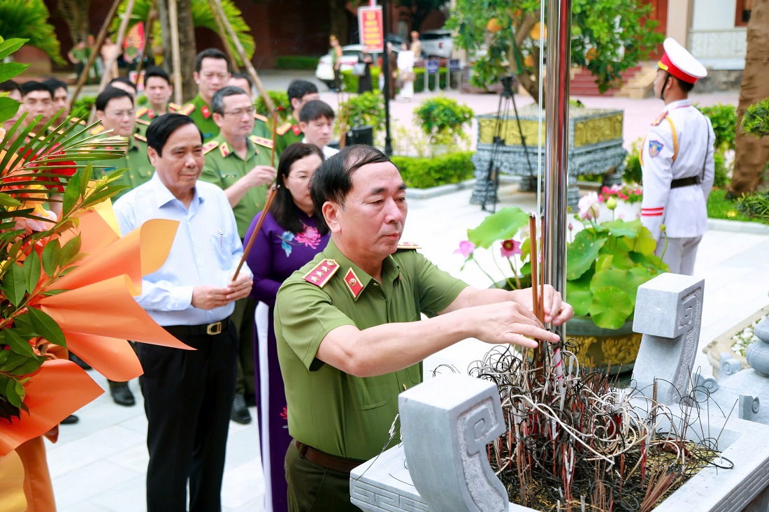 Trước đó, Đoàn đại biểu đã dâng hoa, dâng hương bày tỏ lòng thành kính và lòng biết ơn vô hạn trước công lao trời biển của Chủ tịch Hồ Chí Minh - Anh hùng giải phóng dân tộc, danh nhân văn hóa kiệt xuất, vị lãnh tụ vĩ đại của Đảng và Nhân dân Việt Nam tại Nhà tưởng niệm Chủ tịch Hồ Chí Minh trong khuôn viên Công an tỉnh Nghệ An.