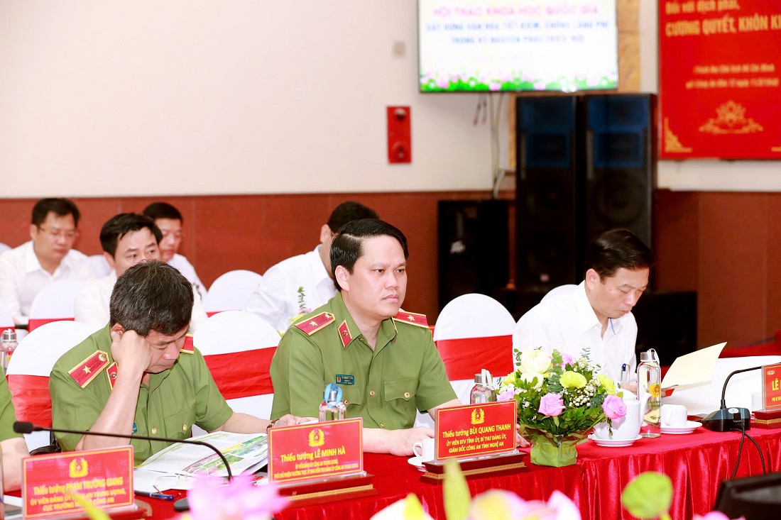 Phát biểu kết luận tại Hội thảo, đồng chí Thượng tướng, PGS.TS Trần Quốc Tỏ, Ủy viên Trung ương Đảng, Phó Bí thư Đảng ủy Công an Trung ương, Thứ trưởng Bộ Công an nhấn mạnh: Xây dựng và thực hành văn hóa tiết kiệm, phòng chống lãng phí là một trong những nhiệm vụ quan trọng của mỗi cá nhân, tổ chức và toàn xã hội. Để hình thành văn hóa thực hành tiết kiệm, phòng, chống lãng phí, cần tiếp tục quán triệt, tổ chức triển khai thực hiện nghiêm chủ trương, đường lối của Đảng, chính sách, pháp luật của Nhà nước về công tác thực hành tiết kiệm, chống lãng phí. Đặc biệt là những chỉ đạo của đồng chí Tổng Bí thư Tô Lâm về tiết kiệm, chống lãng phí, Chỉ thị số 42 ngày 16/01/2025 của Bộ Chính trị về tăng cường công tác lãnh đạo của Đảng đối với công tác giáo dục cần, kiệm, liêm, chính, chí công vô tư; coi đây là nhiệm vụ trọng tâm, thường xuyên của các cơ quan, tổ chức, cán bộ, đảng viên.