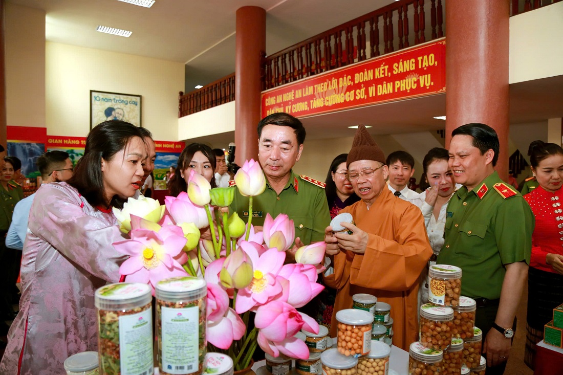 | Đồng chí Thượng tướng Trần Quốc Tỏ, Thứ trưởng Bộ Công an và các đại biểu tham quan gian hàng trưng bày sản phẩm OCCOP |