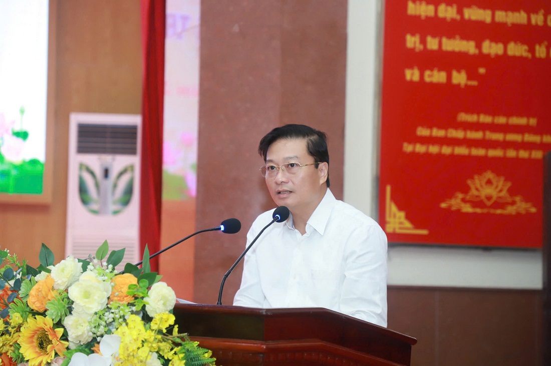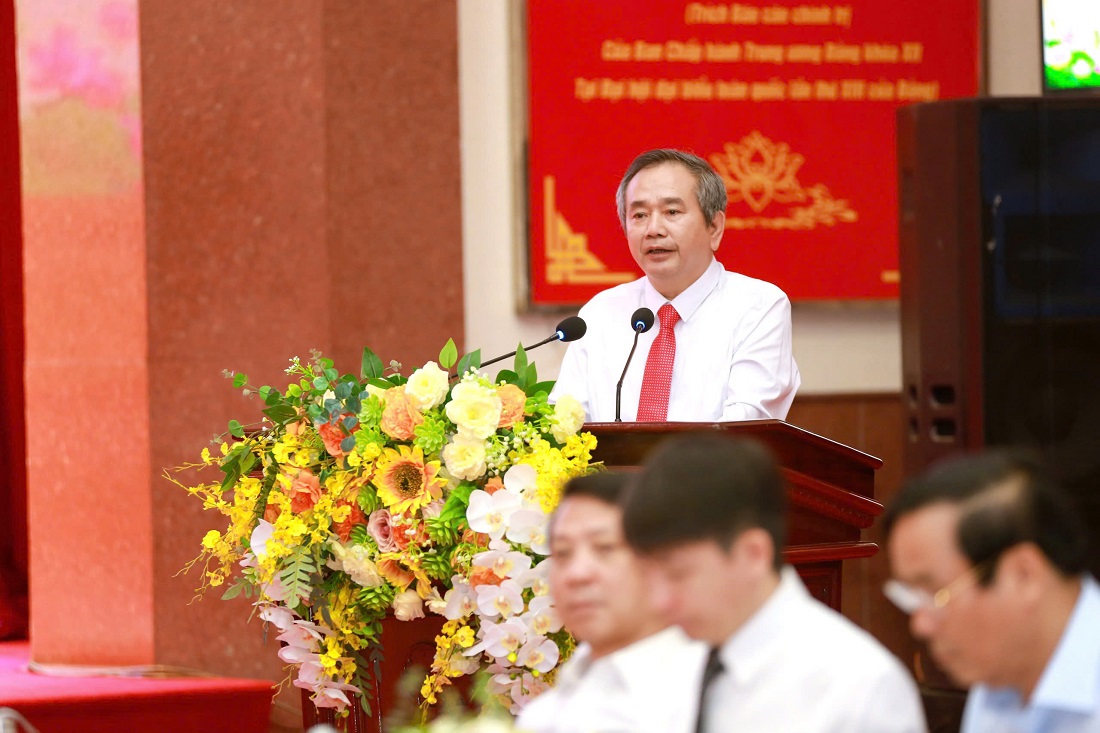 | Đồng chí Nguyễn Đức Trung, Bí thư Tỉnh ủy Nghệ An phát biểu tại Hội thảo |