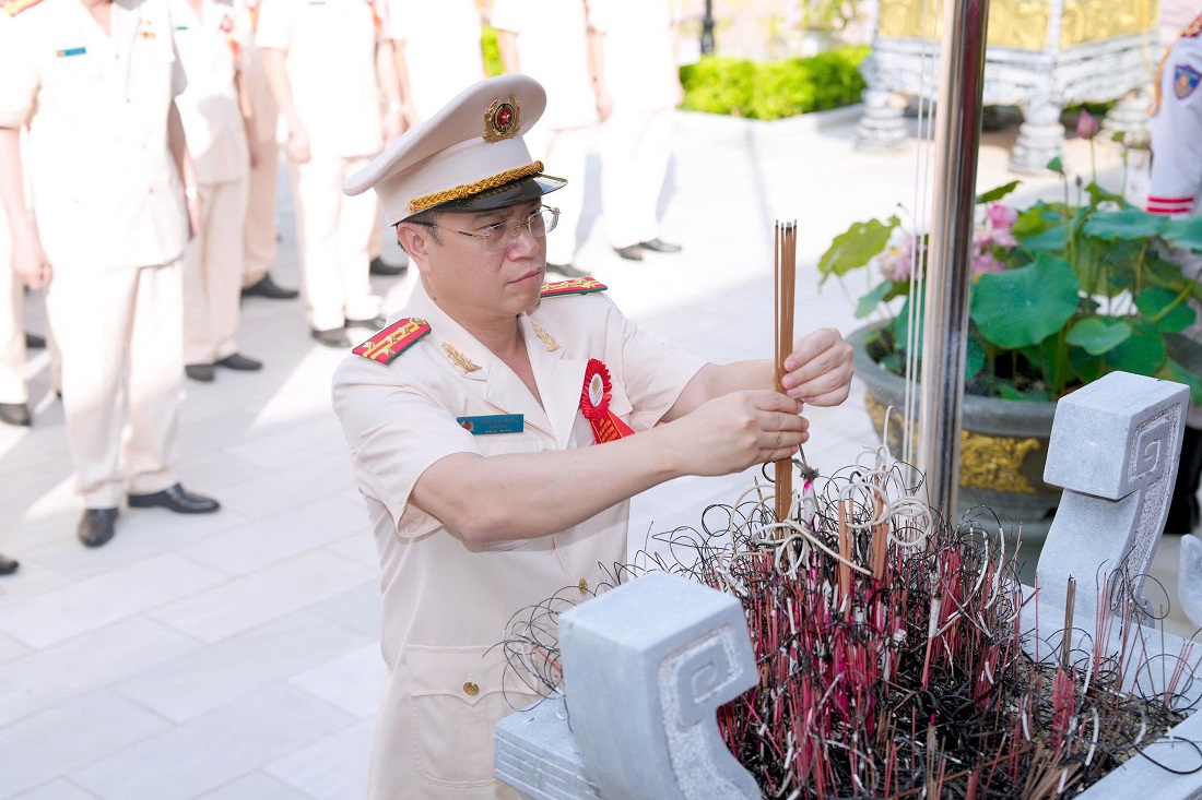 | Đồng chí Đại tá Đinh Việt Dũng, Bí thư Đảng ủy, Giám đốc Công an tỉnh dâng hoa, dâng hương tưởng niệm Chủ tịch Hồ Chí Minh |