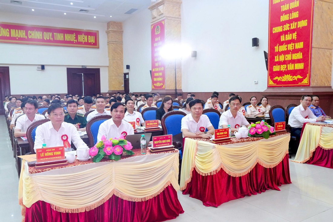 Tại Hội nghị, thừa ủy quyền của Thủ tướng Chính phủ, các đồng chí: Lê Hồng Vinh, Phó Bí thư Tỉnh ủy, Chủ tịch UBND tỉnh và Đại tá Đinh Việt Dũng, Bí thư Đảng ủy, Giám đốc Công an tỉnh đã trao tặng Cờ thi đua xuất sắc cho tập thể Phòng Tham mưu và 05 đơn vị Công an cấp xã. Dịp này, Công an Nghệ An đã biểu dương, tôn vinh, khen thưởng 30 tập thể, 50 cá nhân điển hình tiên tiến xuất sắc, là những đoá hoa tươi thắm trong rừng hoa muôn sắc của Công an tỉnh trong giai đoạn 2020 -2025. Hội nghị cũng đã nghe các báo cáo tham luận của các tập thể, cá nhân điển hình; thông qua danh sách đại biểu dự Đại hội thi đua cấp trên.