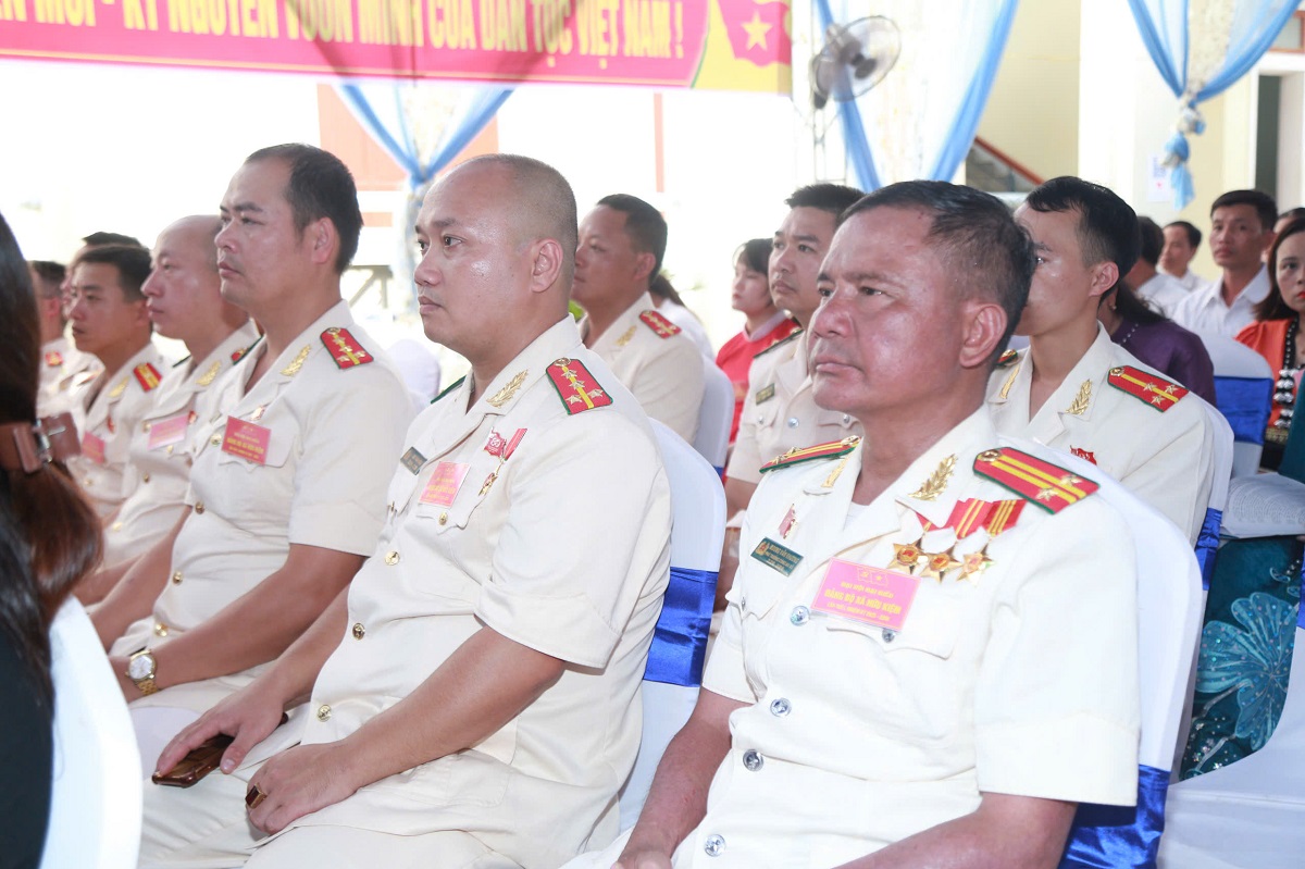 | Đồng chí Đại tá Đinh Việt Dũng, Ủy viên Ban Thường vụ Tỉnh ủy, Giám đốc Công an tỉnh chụp ảnh lưu niệm cùng các đại biểu Công an xã Hữu Kiệm |